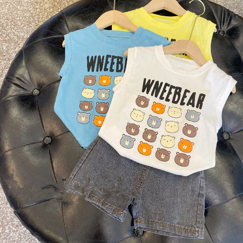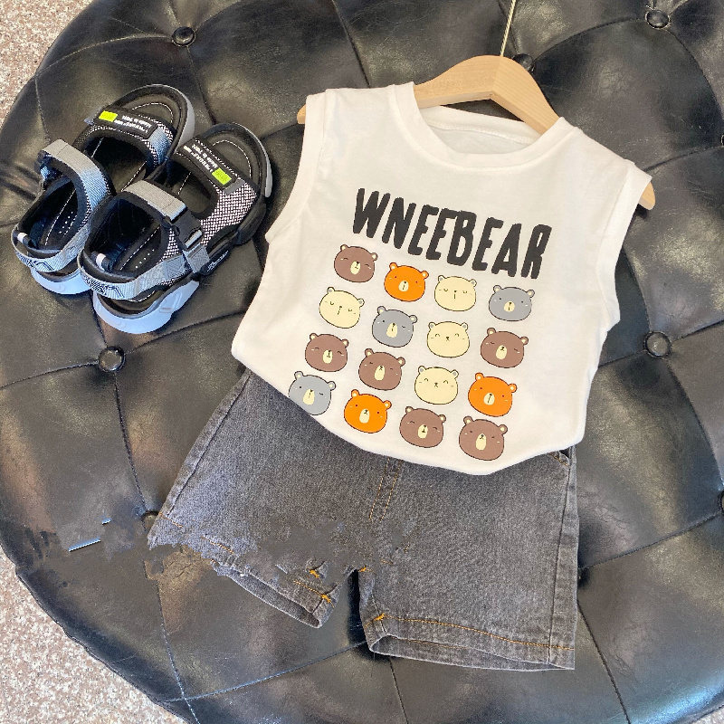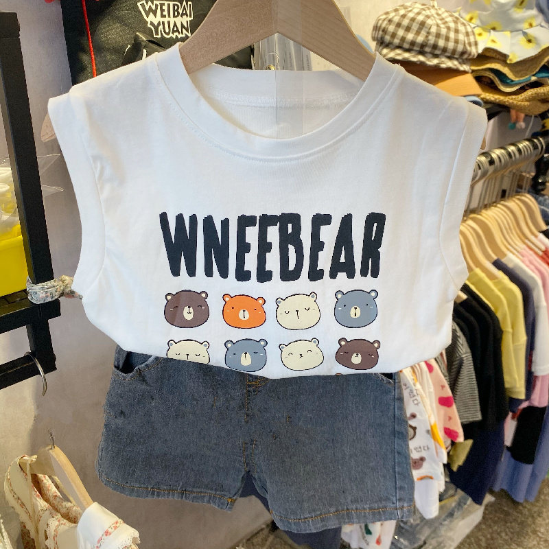 면 아기 어린이 민소매 티셔츠 2024 패션 브랜드 잘 생긴 소년과 소녀 조끼 탑 여름스토어 가기