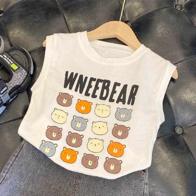 면 아기 어린이 민소매 티셔츠 2024 패션 브랜드 잘 생긴 소년과 소녀 조끼 탑 여름