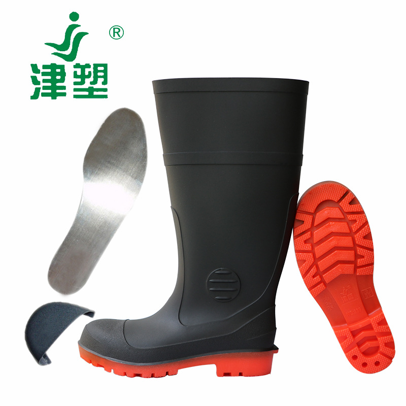 재고 진 플라스틱 강철 발가락 강철 밑창 장화 안티 스매싱 안티 피어싱 고무 신발 남성용 두꺼운 노동 보호 장화 보호 워터 슈즈