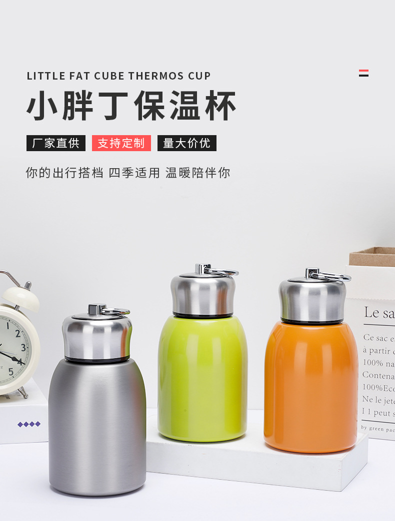 세련된 간단한 통통한 컵 소형 휴대용 등산 주전자 304 스테인레스 스틸 더블 레이어 진공 보온병 컵