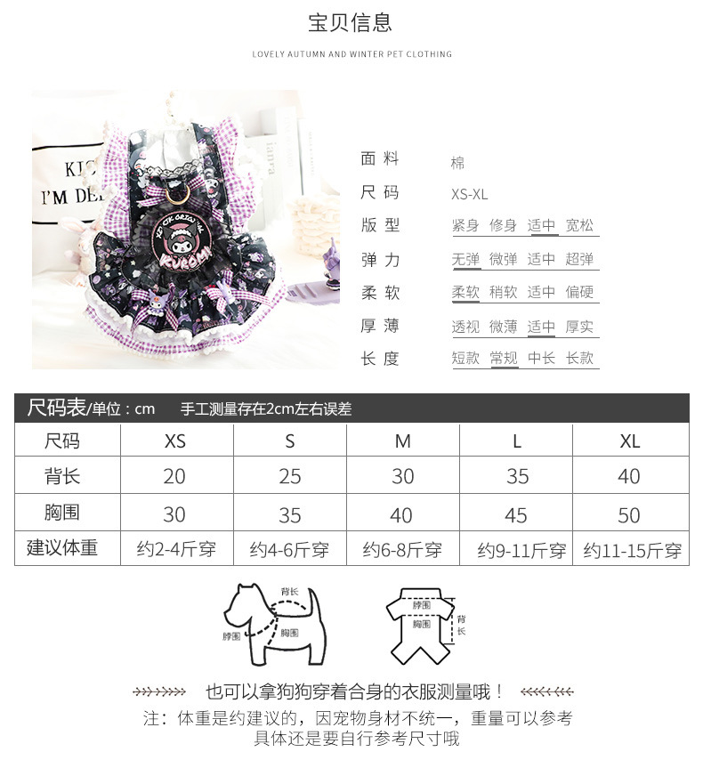 개 옷 봄과 여름 얇은 고양이 공주 원피스 보라색 Culomile 로리타 작은 개 테디 애완 동물 4753