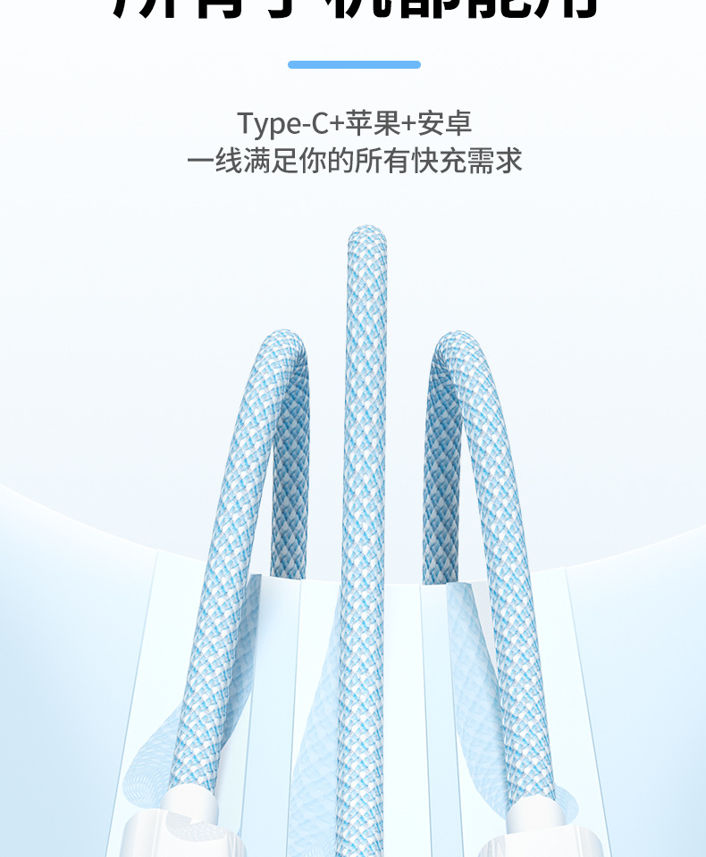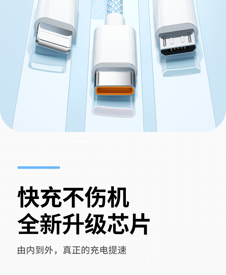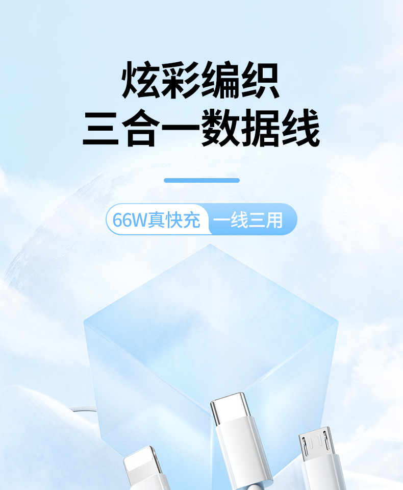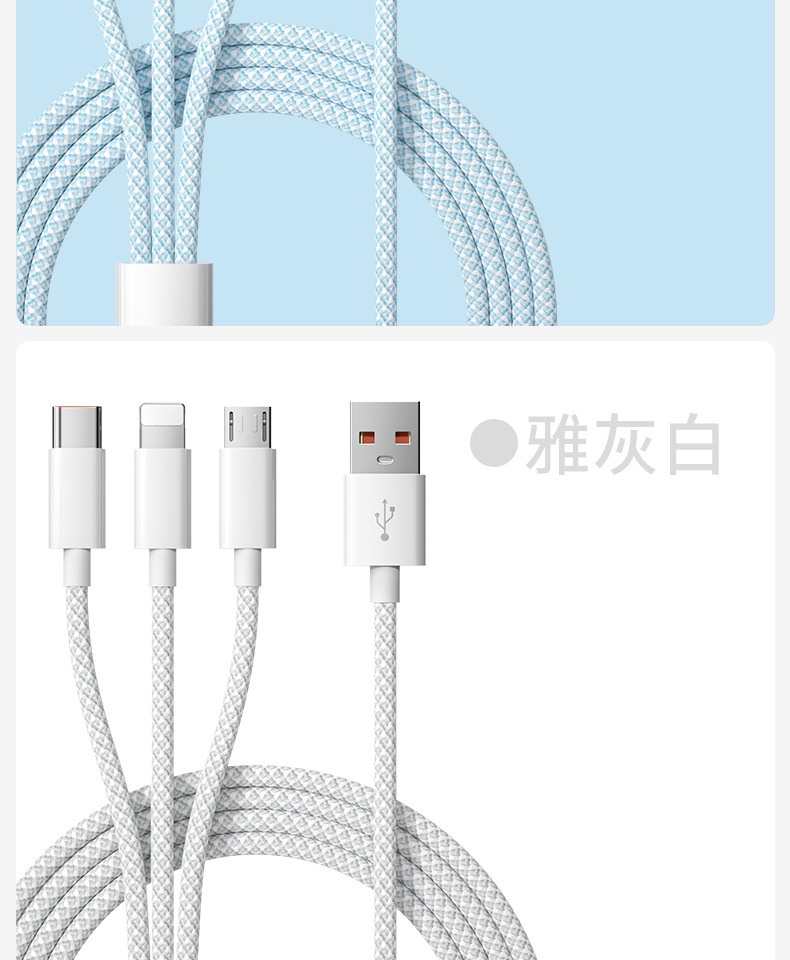 3-in-one 데이터 케이블 66W 고속 충전 1-3 충전 케이블카 안드로이드 샤오미 애플 화웨이 생체