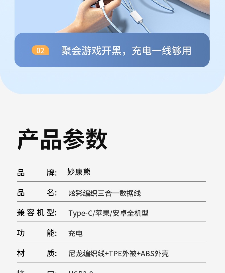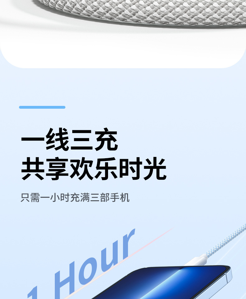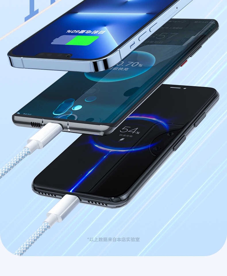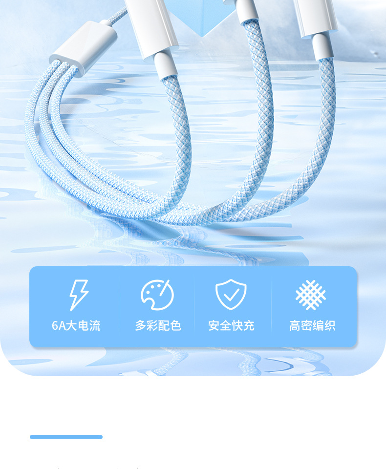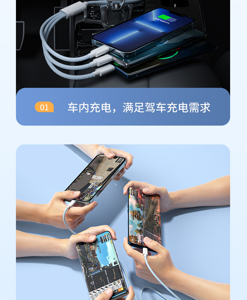 3-in-one 데이터 케이블 66W 고속 충전 1-3 충전 케이블카 안드로이드 샤오미 애플 화웨이 생체