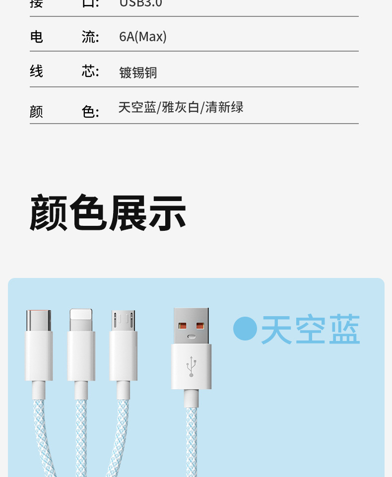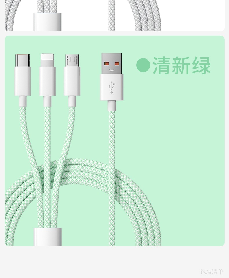 3-in-one 데이터 케이블 66W 고속 충전 1-3 충전 케이블카 안드로이드 샤오미 애플 화웨이 생체스토어 가기