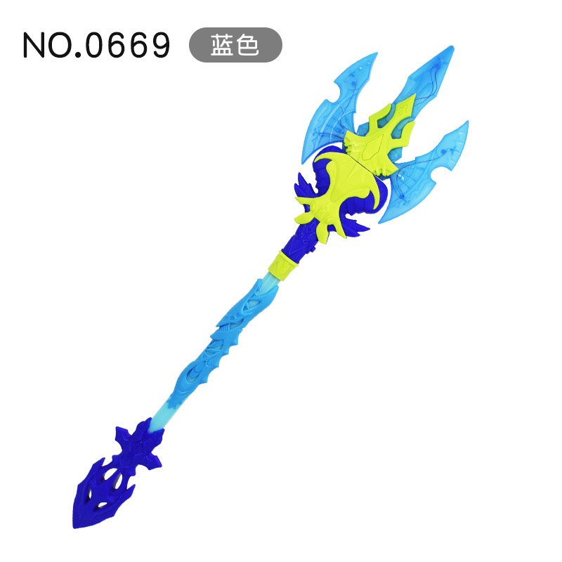 새로운 어린이 전기 트라이던트 장난감을 열고 닫을 수 있습니다 회전 발광 음악 스틱 소년 모델 장난감 도매스토어 가기