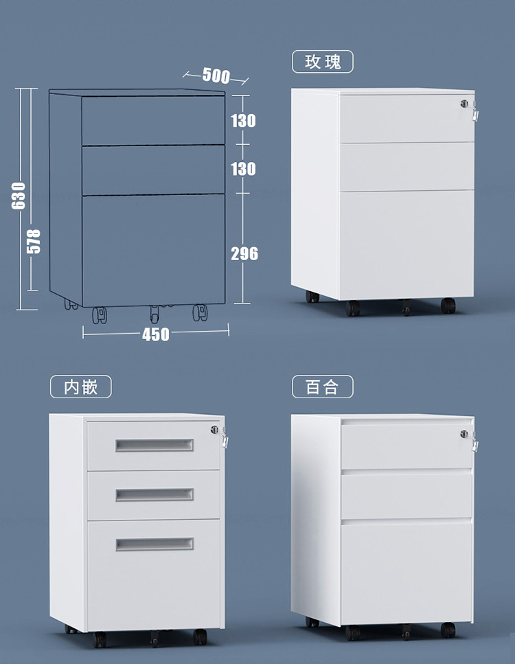 서랍이 있는 사무실 책상 밑 이동식 캐비닛, 잠금장치가 있는 다층 이동식 수납장, 새로운 모던 스틸 낮은 캐비닛