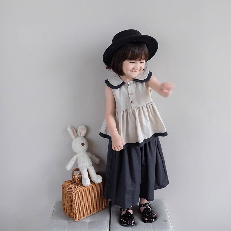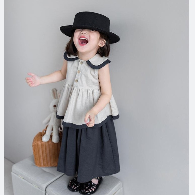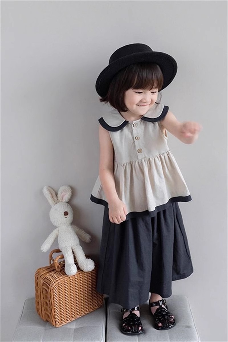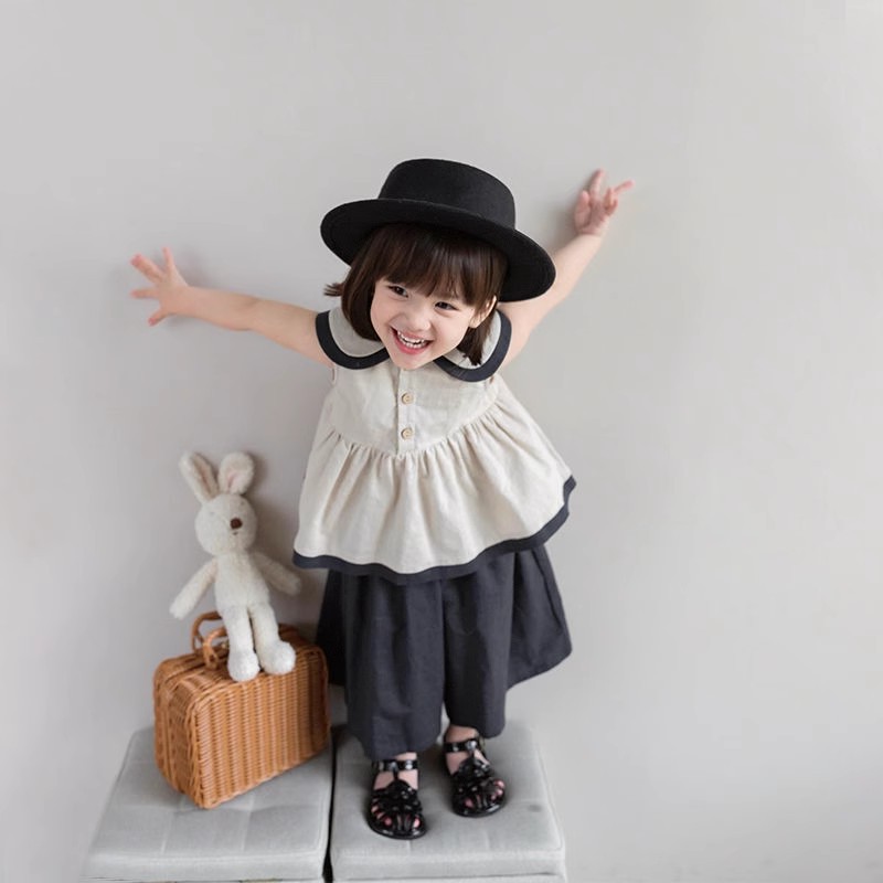 여아 정장 인형 칼라 프렌치 베이비 탑과 와이드 팬츠 25 여름 새 스타일 대외 무역 아동복스토어 가기