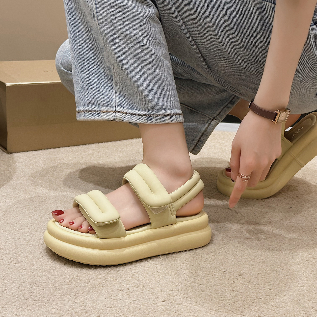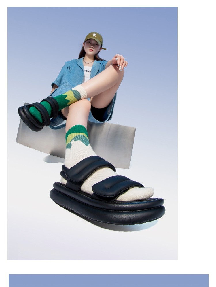 플랫폼 캐주얼 샌들 여성용 2023 여름 새로운 벨크로 레트로 오픈 토 플랫 비치 신발 로마 신발스토어 가기