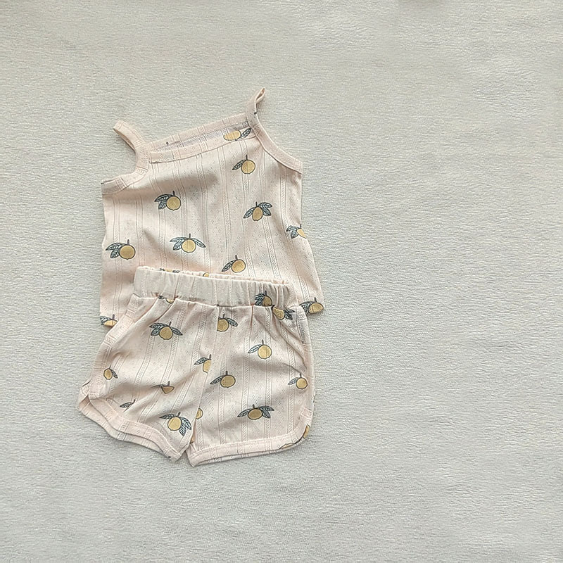 아기 잠옷 세트 여름 얇은 면 여름 중공 과일 캐미솔 세트 여아 가정 의류