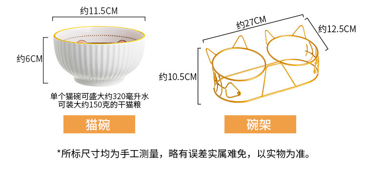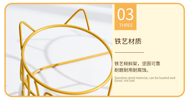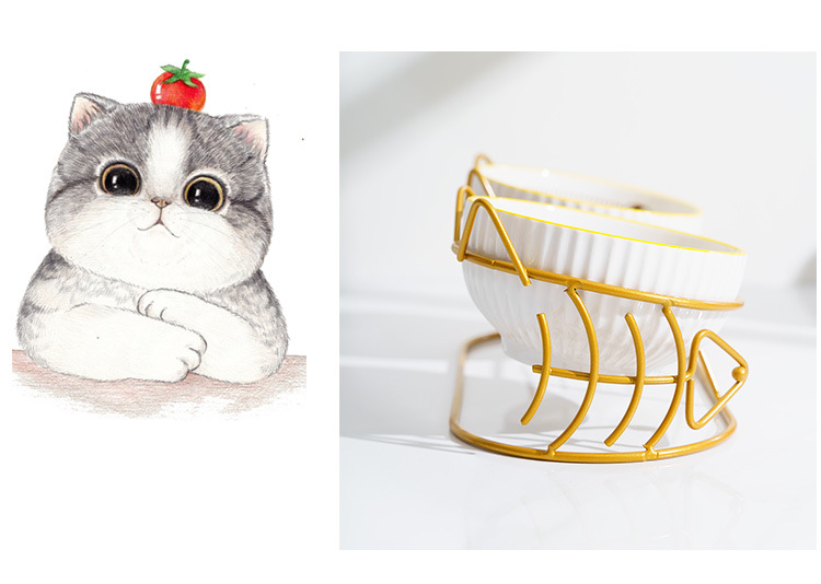 • 고양이 모양의 골드 프레임이있는 흰색 가장자리 보호 이중 그릇