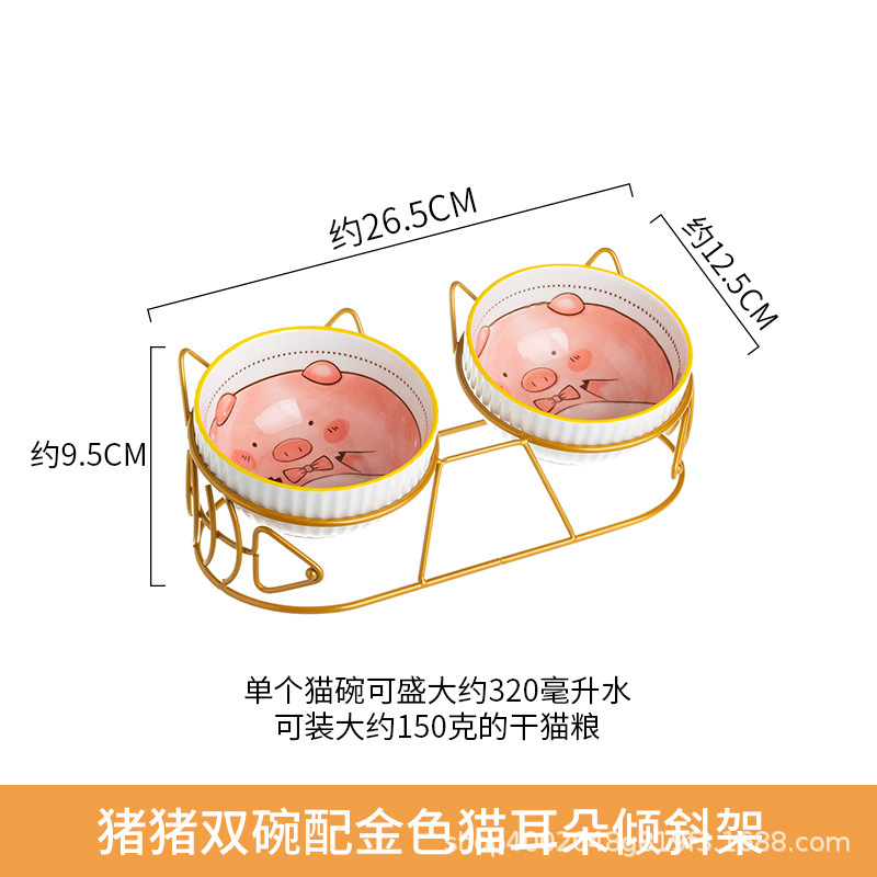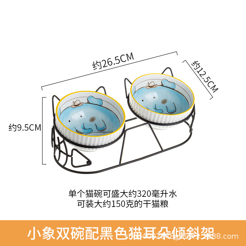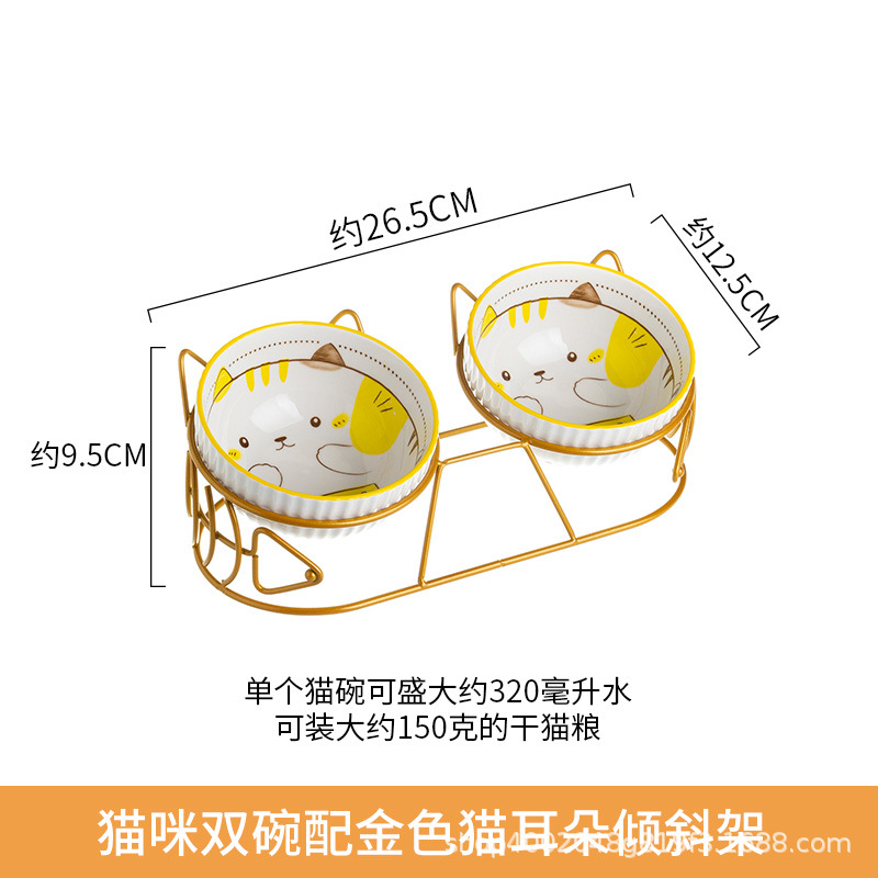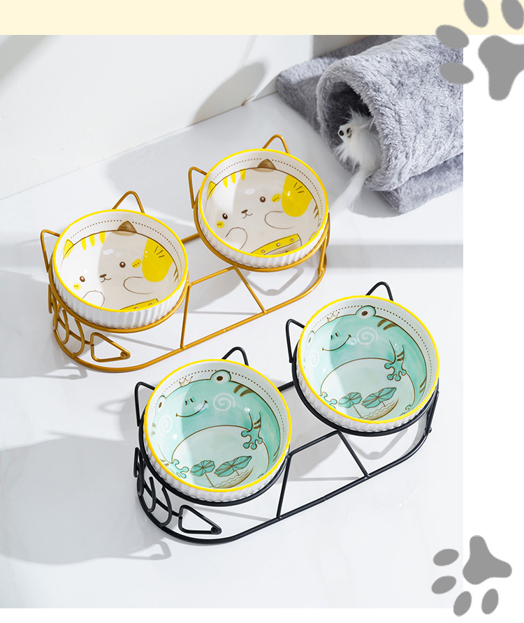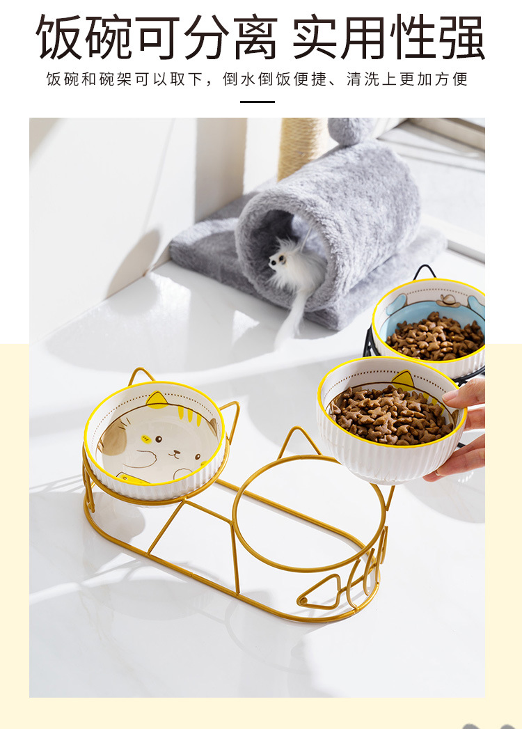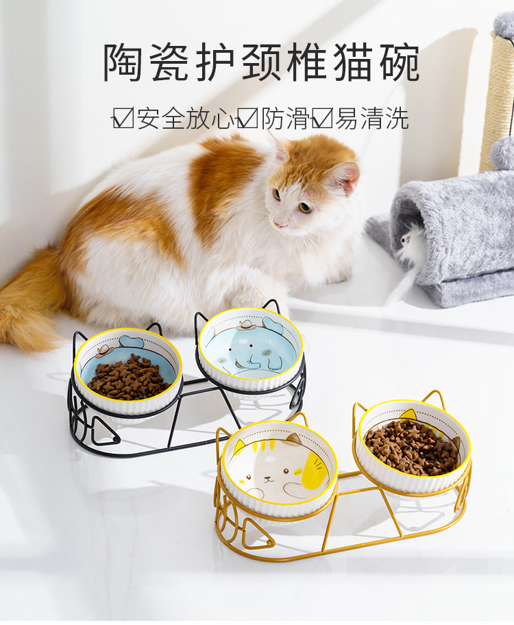 고양이 그릇 더블 그릇 세라믹 고양이 먹이 분지 개 그릇 애완 동물 그릇 고양이 음식 물 그릇 전복으로부터 경추 보호 고정 상승 랙