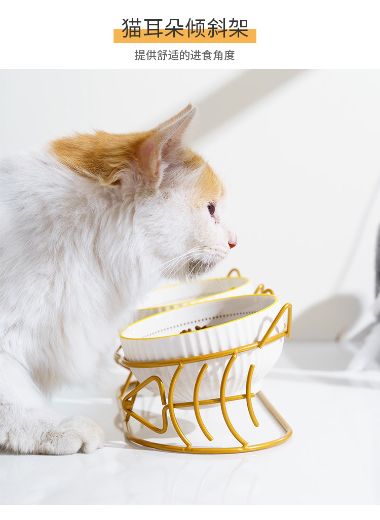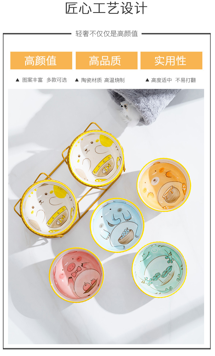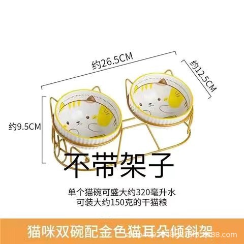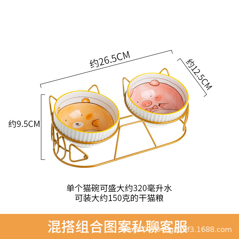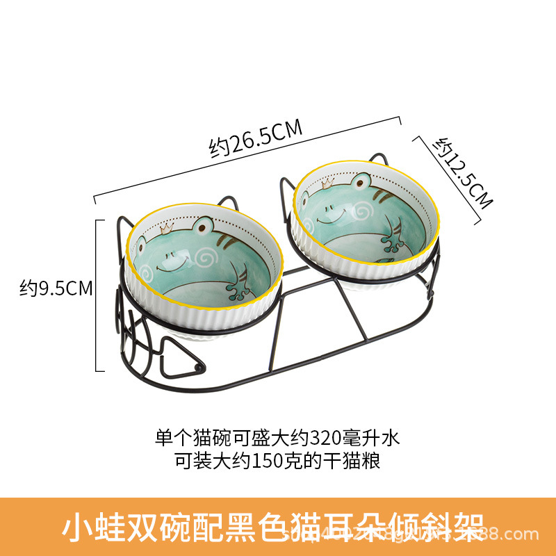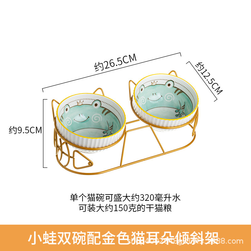 고양이 그릇 더블 그릇 세라믹 고양이 먹이 분지 개 그릇 애완 동물 그릇 고양이 음식 물 그릇 전복으로부터 경추 보호 고정 상승 랙