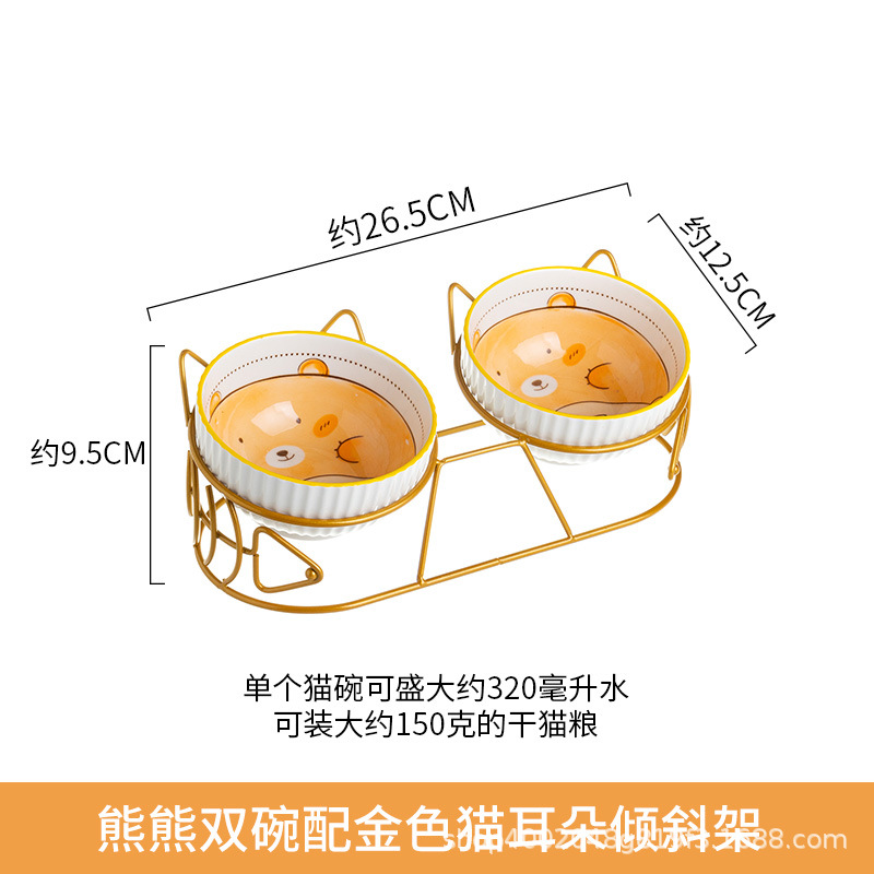 • 황금 고양이 귀 기울기 랙이있는 곰 더블 그릇
