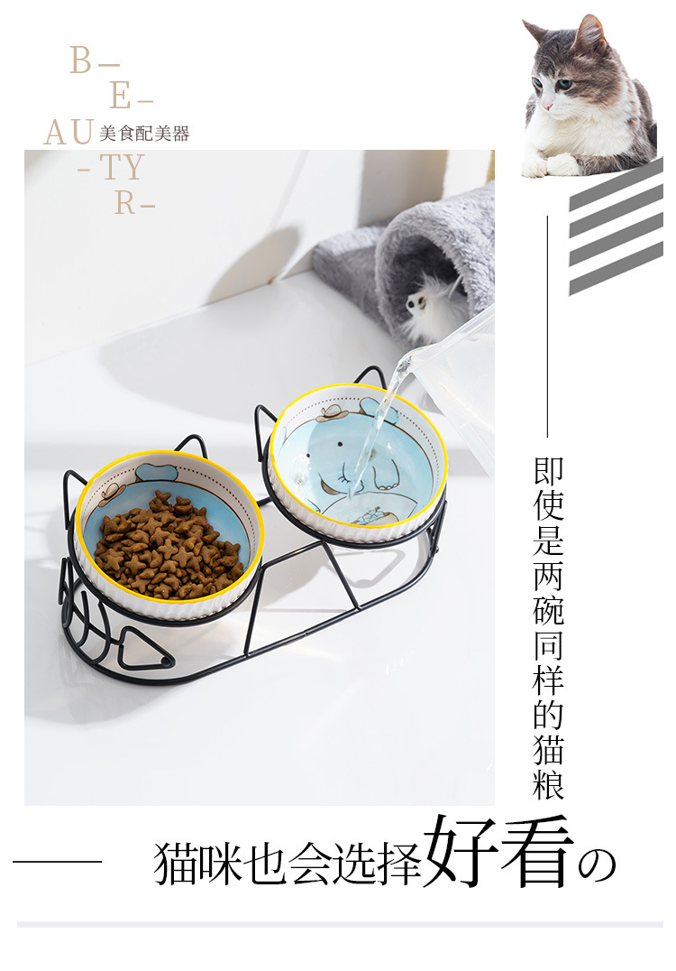 고양이 그릇 더블 그릇 세라믹 고양이 먹이 분지 개 그릇 애완 동물 그릇 고양이 음식 물 그릇 전복으로부터 경추 보호 고정 상승 랙스토어 가기