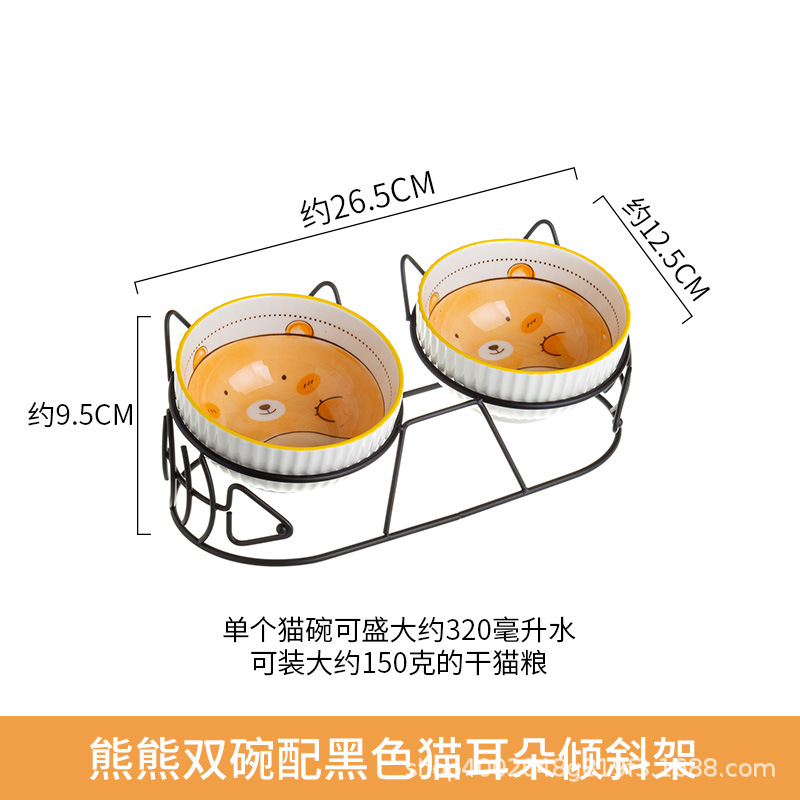 • 검은 고양이 귀 틸트 랙이있는 곰 더블 보울