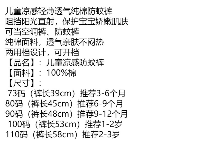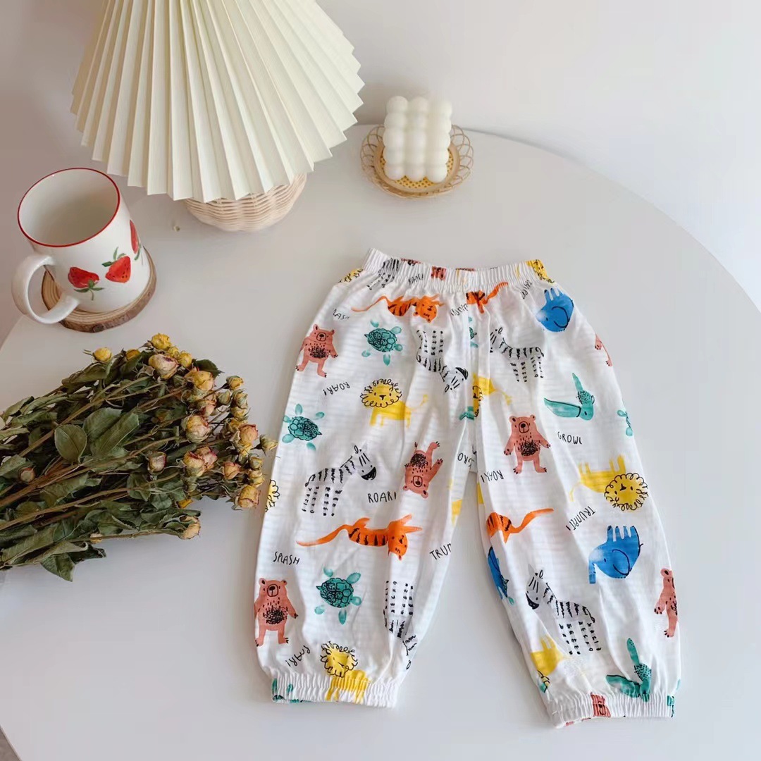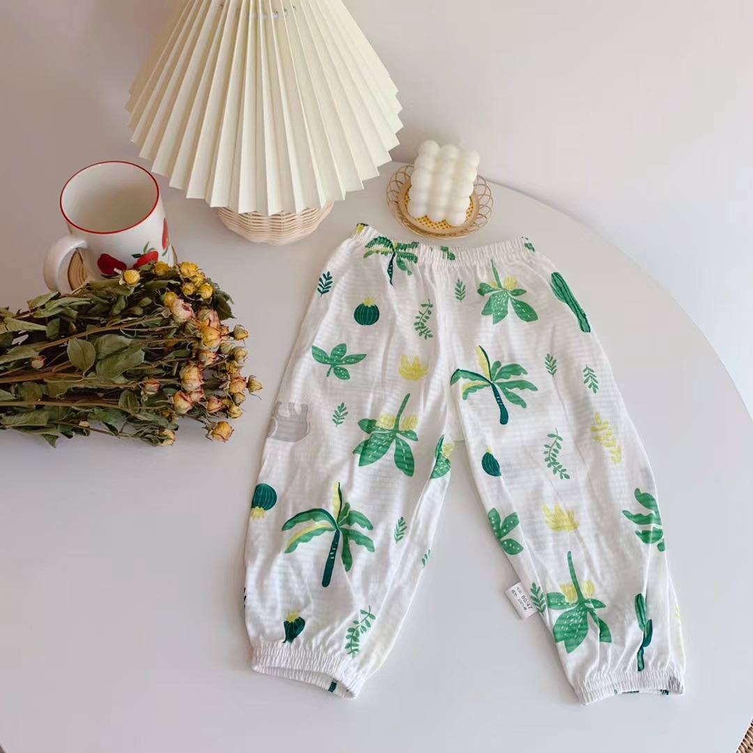 [서프라이즈] 어린이 시원한 느낌 가벼운 통기성 코튼 안티 모기 팬츠 캐주얼 팬츠 베이비 에어컨 팬츠 느슨한스토어 가기