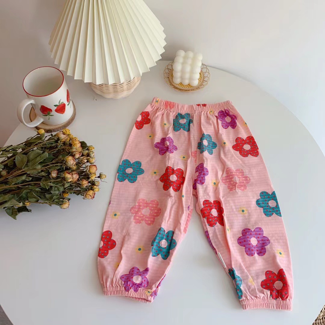 [서프라이즈] 어린이 시원한 느낌 가벼운 통기성 코튼 안티 모기 팬츠 캐주얼 팬츠 베이비 에어컨 팬츠 느슨한