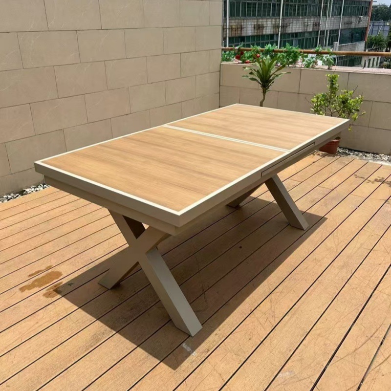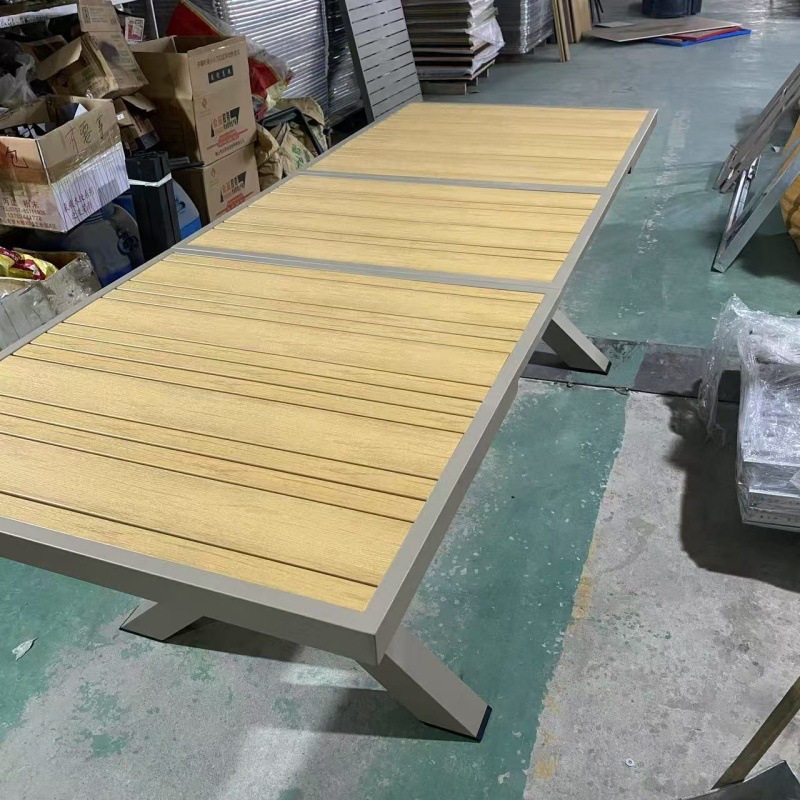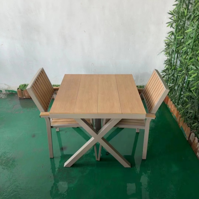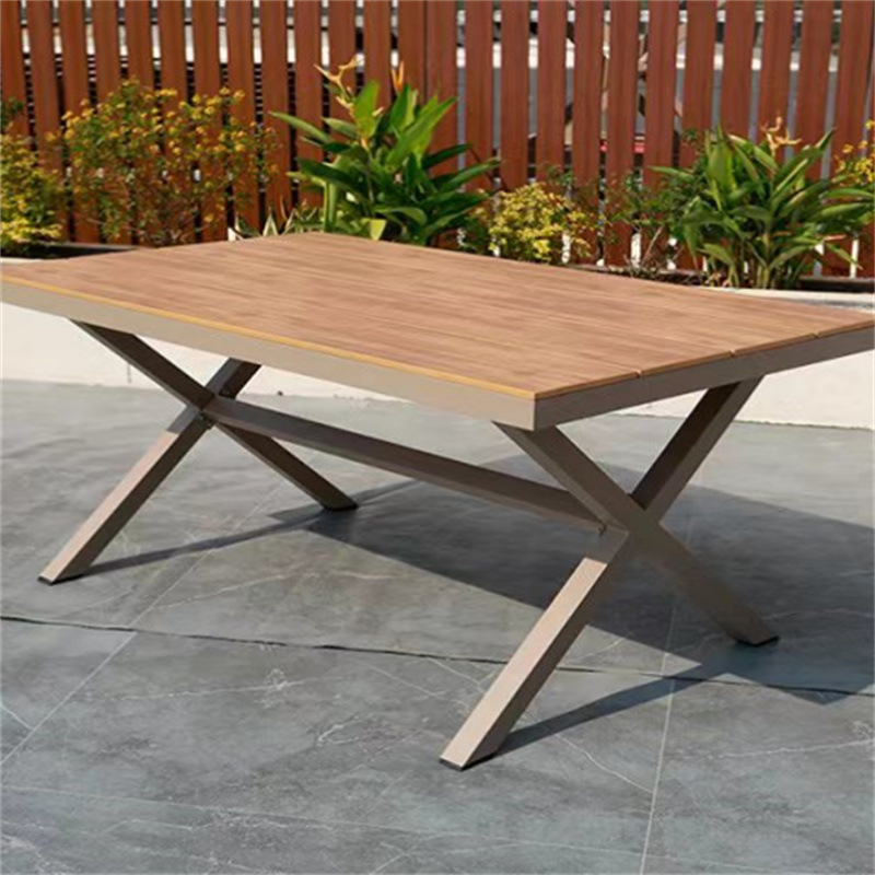 야외 레저용 플라스틱 목재 테이블과 의자 세트, 야외 방수 가구, 정원 식탁과 의자, 안뜰 방부목 긴 테이블