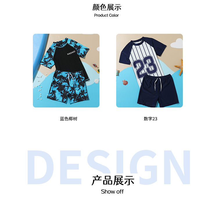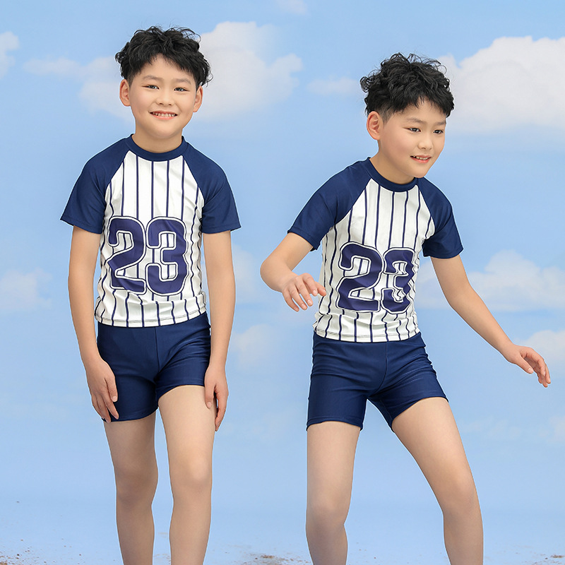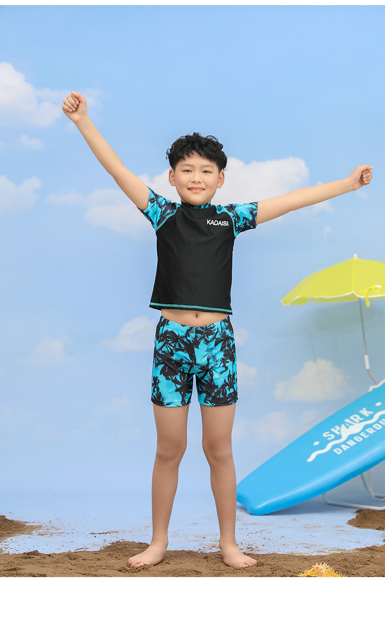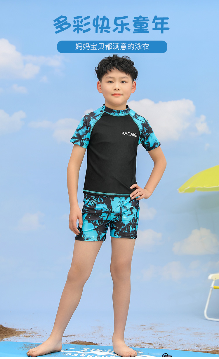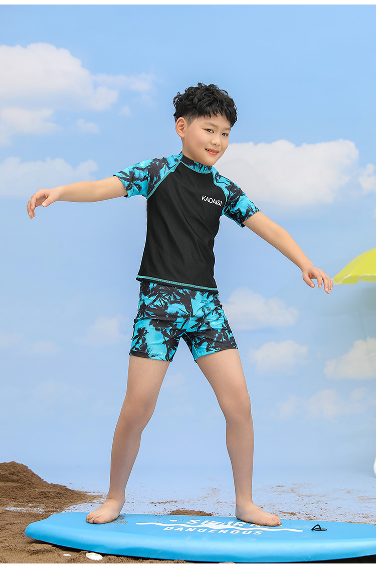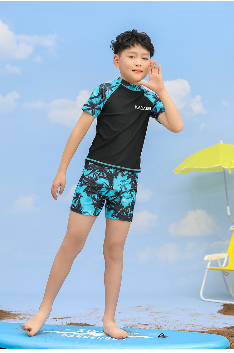 어린이 수영복 소년의 새로운 대형 어린이 분할 투피스 인쇄 반팔 십대 서양 스타일 온천 수영복스토어 가기