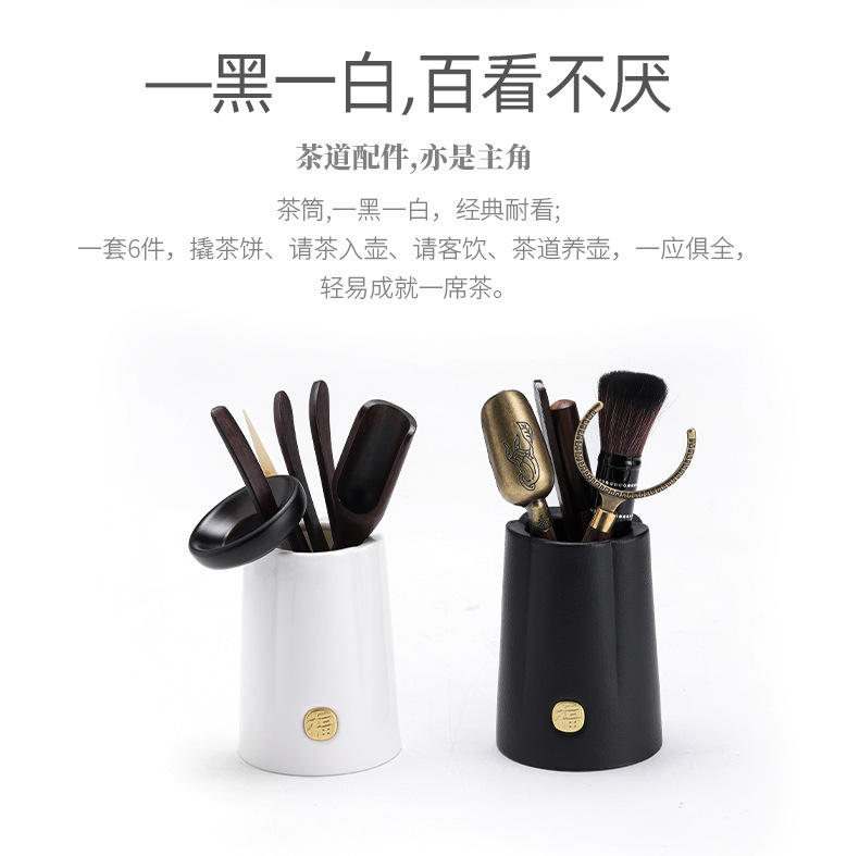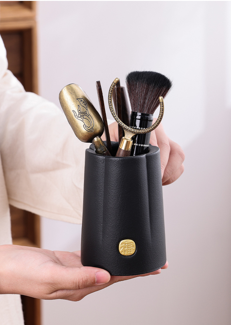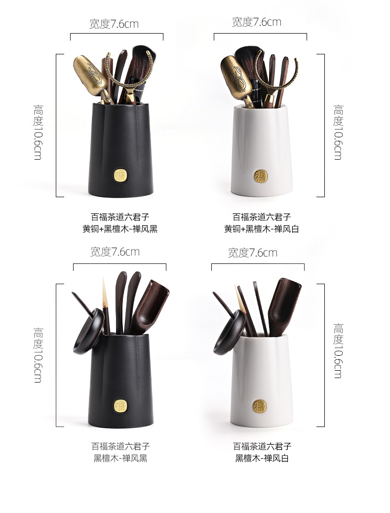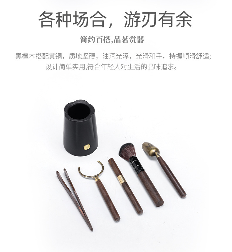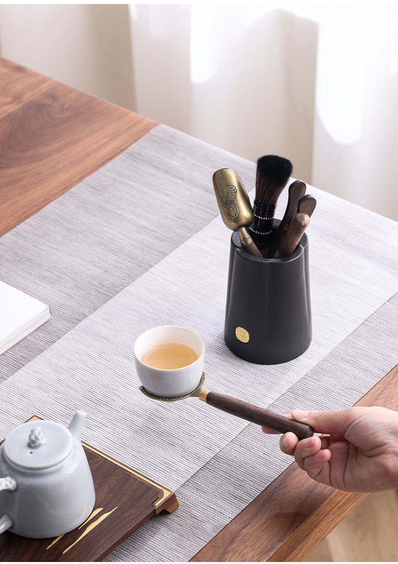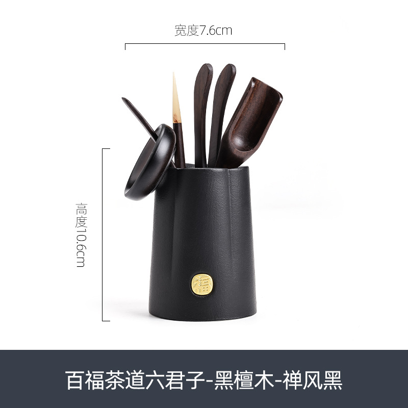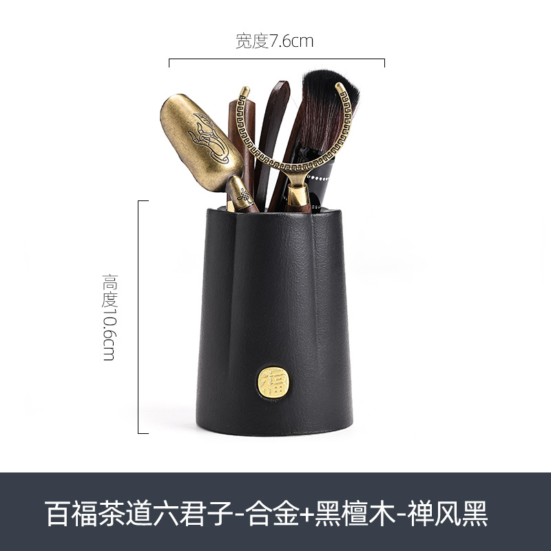 검은 도자기 다도 여섯 신사 세트 황동 흑단 쿵푸 차 세트 다도 예술 액세서리 차 홀더 차 숟가락 차 칼스토어 가기