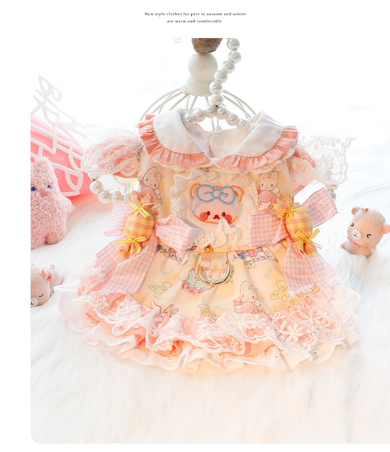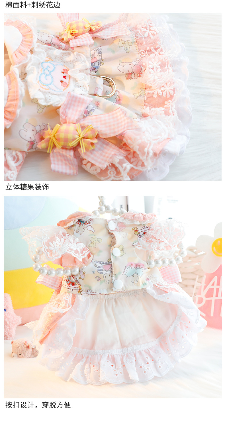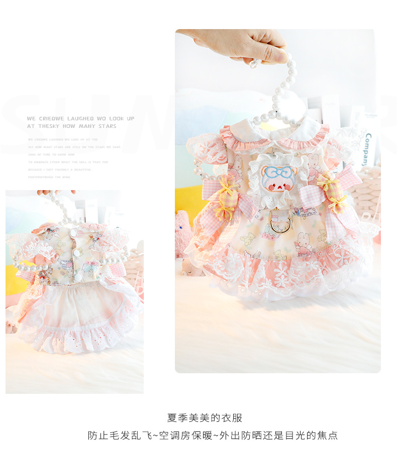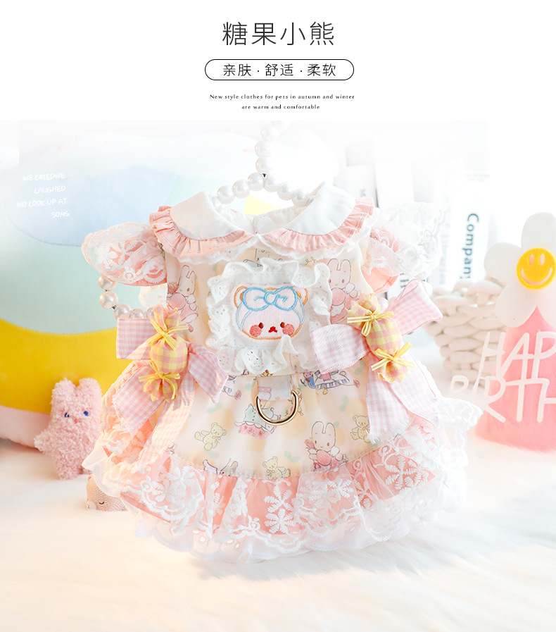 개 옷 봄과 여름 얇은 고양이 공주 원피스 분말 사탕 로리타 달콤한 작은 개 테디 애완 동물 4755