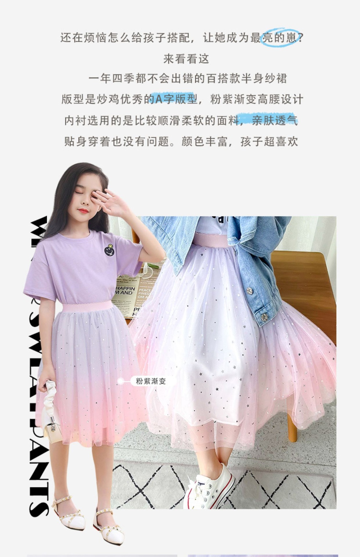 여아 스커트 세련된 어린이 푹신한 치마 여름 여아 짧은 치마 큰 어린이 봄과 가을 공주 메쉬 스커트 여름 원피스