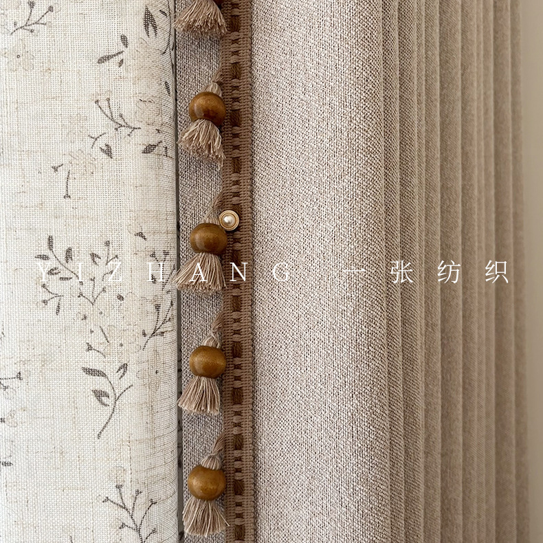 중세풍 프랑스 양면 자카드 크림색 커튼 레트로 멜라드 코튼 린넨 질감 거실 침실 고급스러운 느낌스토어 가기
