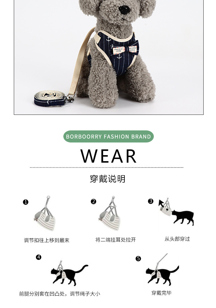 개 견인 로프 한국식 작은 개 테디 조끼 활 저녁 원피스 가슴 스트랩 고양이 복장