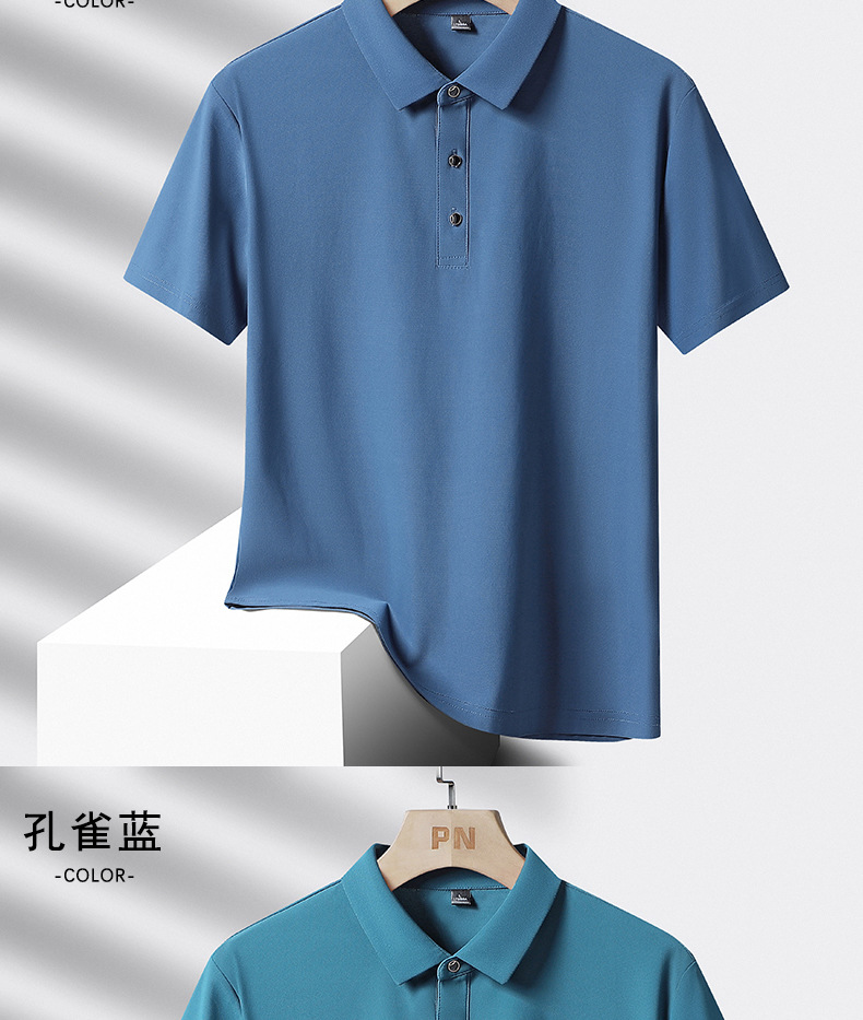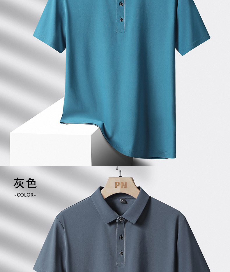 아이스 실크 반팔 티셔츠 여름 얇은 탑 반팔 남성 통기성 느슨한 플러스 대형 POLO Shanshan 원활한