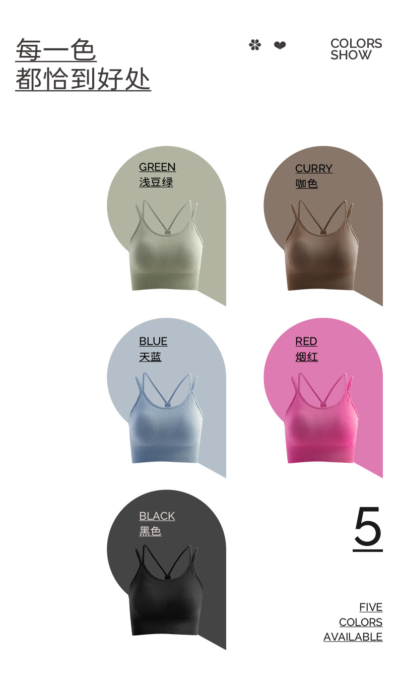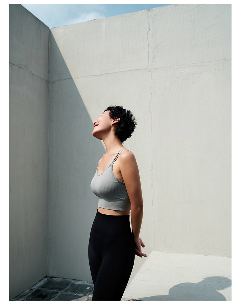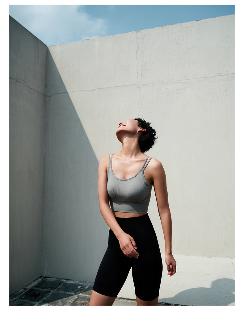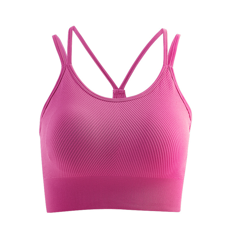 새로운 통기성 요가 의류 어깨 스트랩 스포츠 조끼 겉옷 브래지어 패드가있는 탑 타이트 피트니스 브래지어 속옷 브래지어