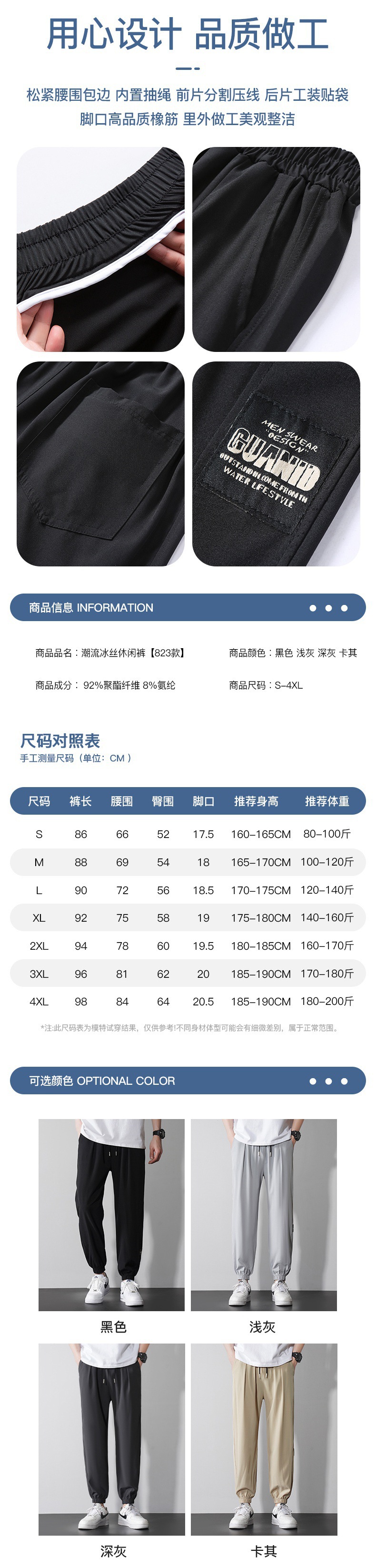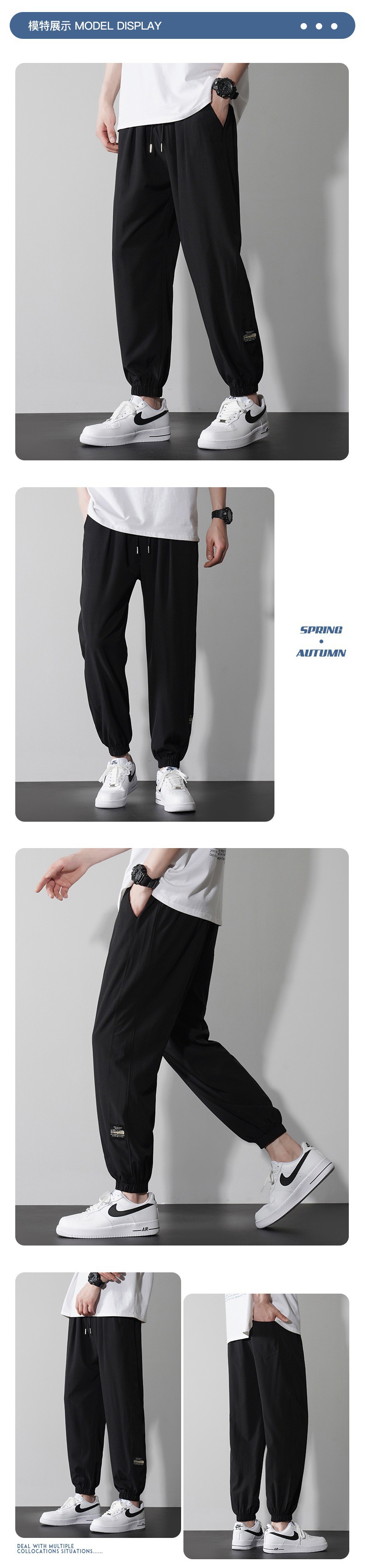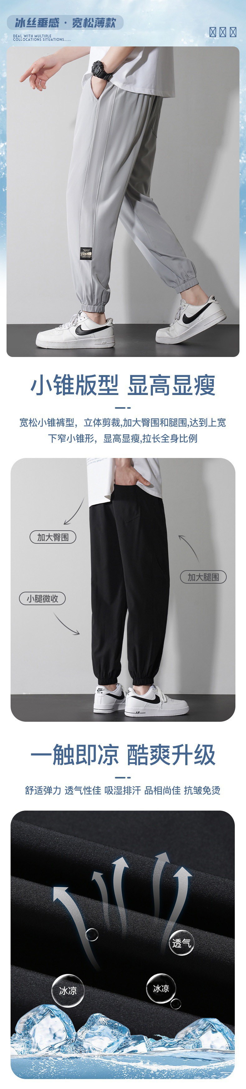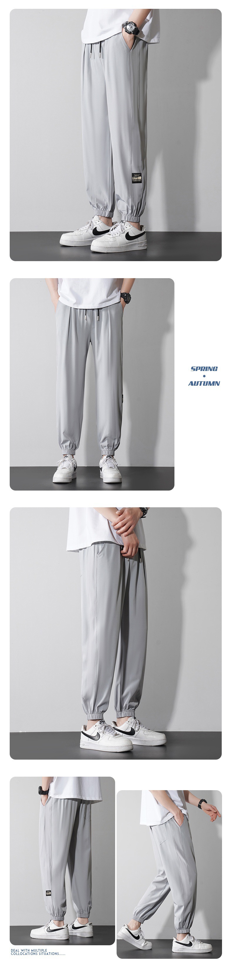 스포츠 캐주얼 바지 남성용 여름 가장자리 바운드 4 면 탄성 아이스 실크 바지 남성용 느슨한 발 묶기 트렌디 브랜드 발목 길이 바지스토어 가기