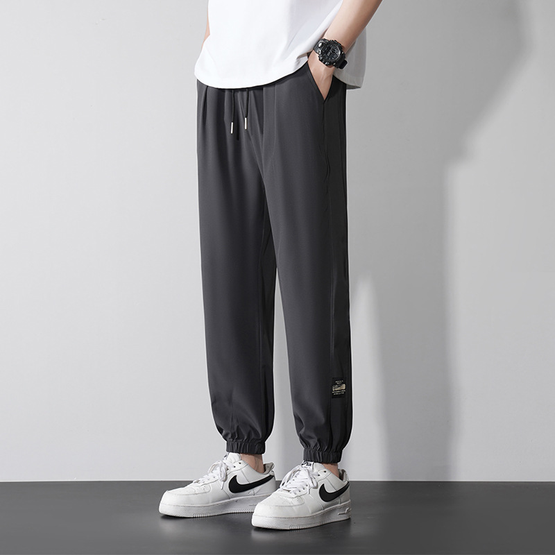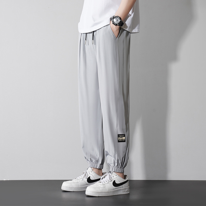 스포츠 캐주얼 바지 남성용 여름 가장자리 바운드 4 면 탄성 아이스 실크 바지 남성용 느슨한 발 묶기 트렌디 브랜드 발목 길이 바지