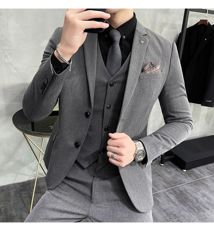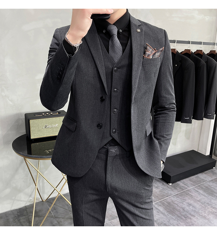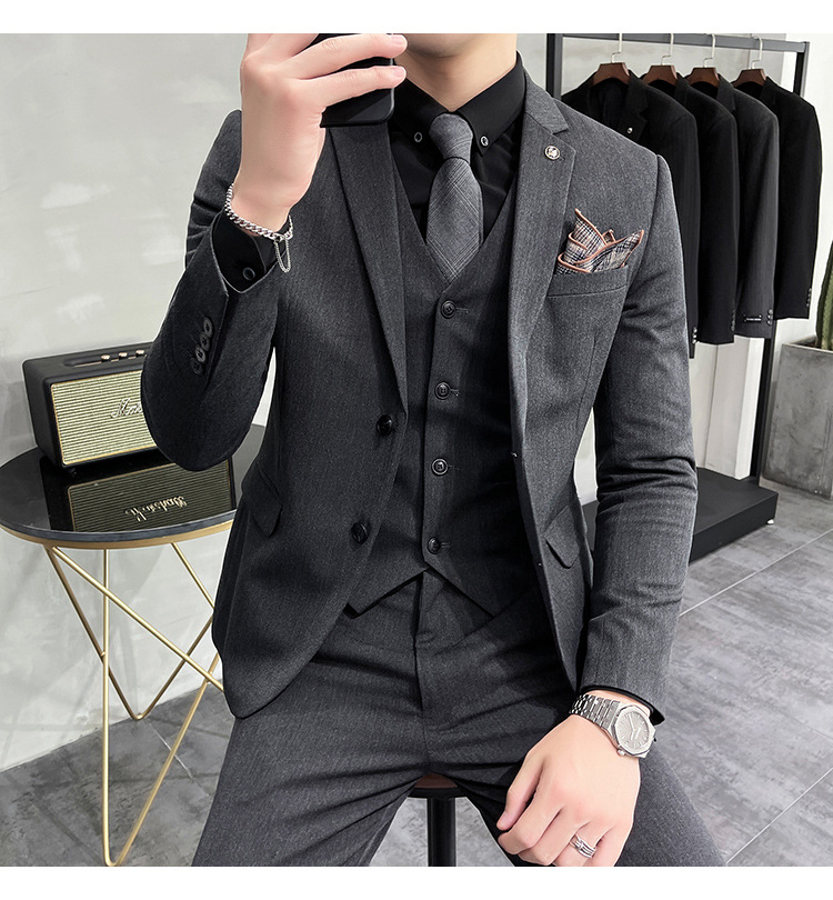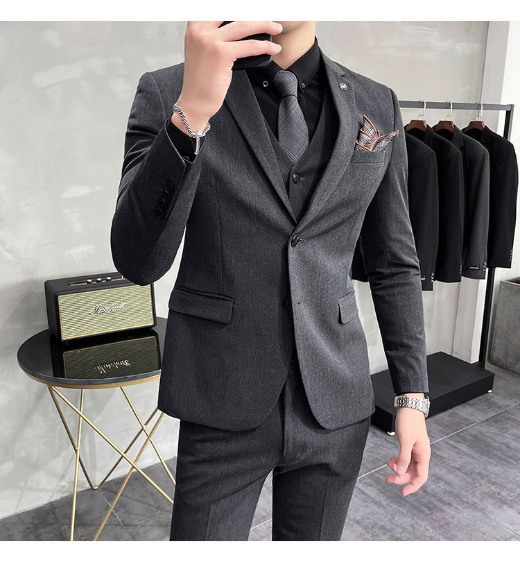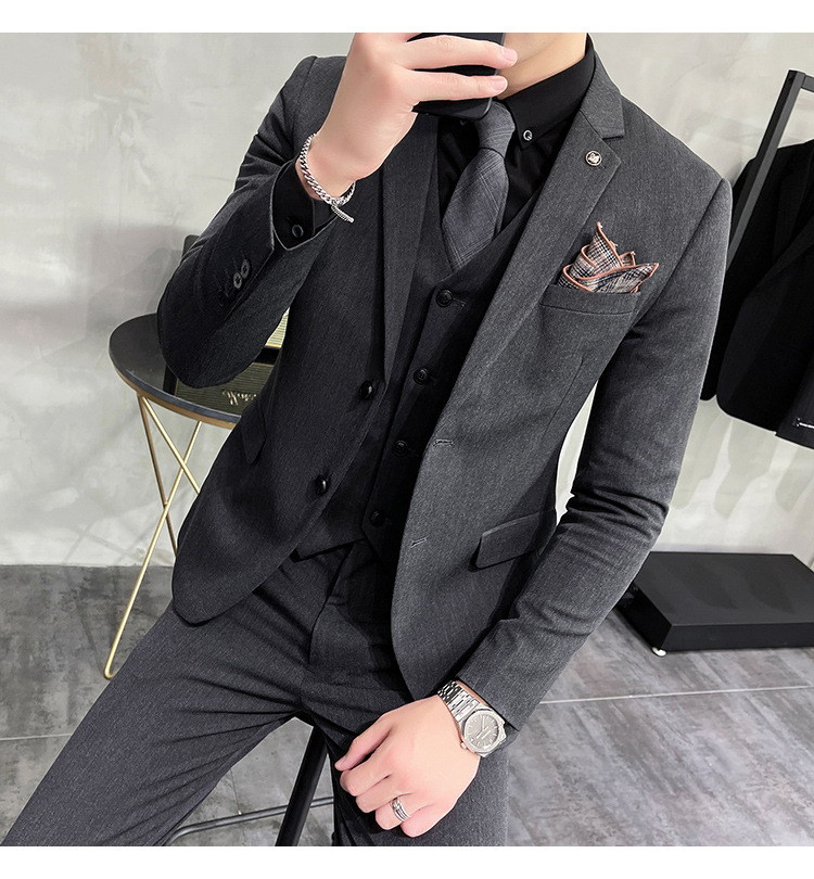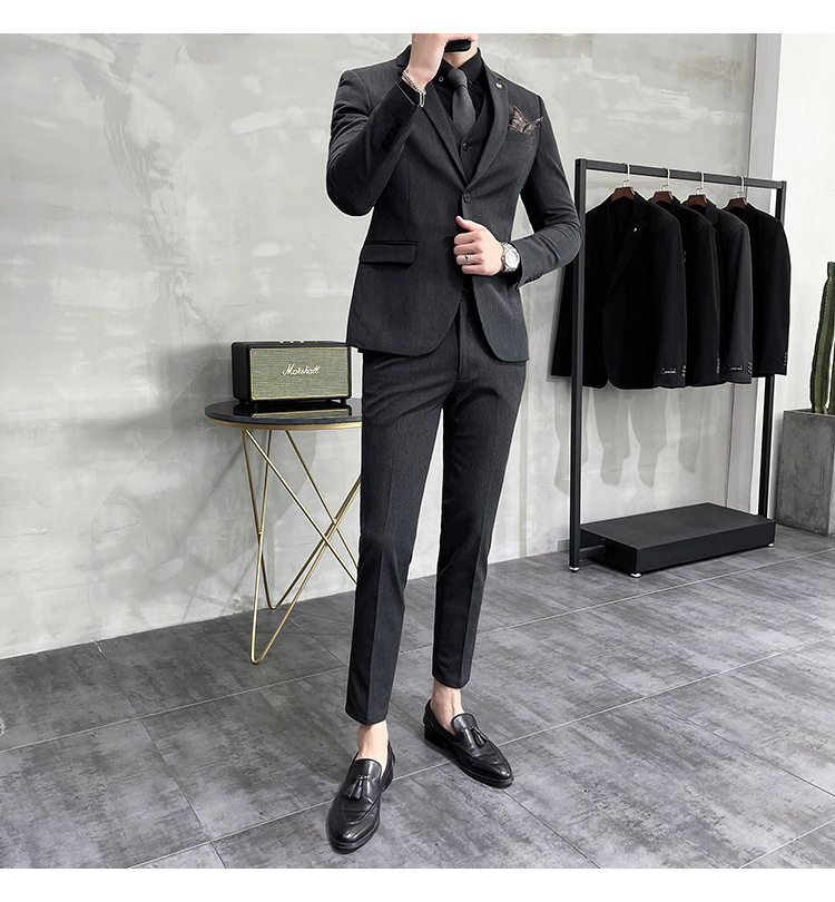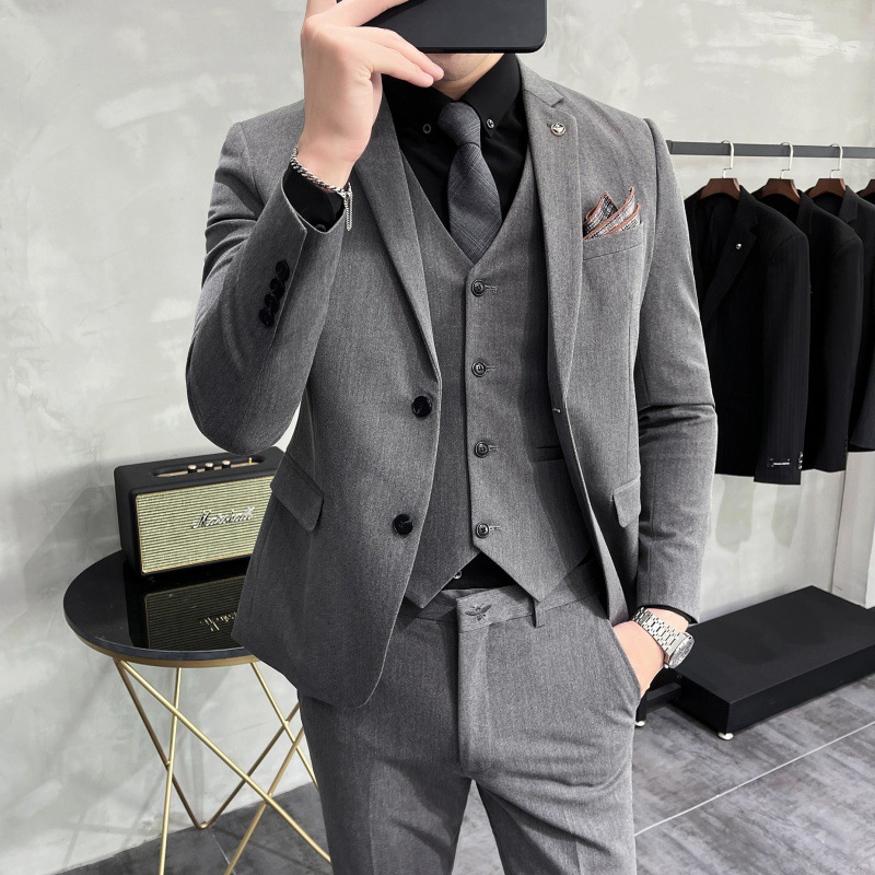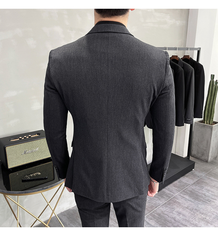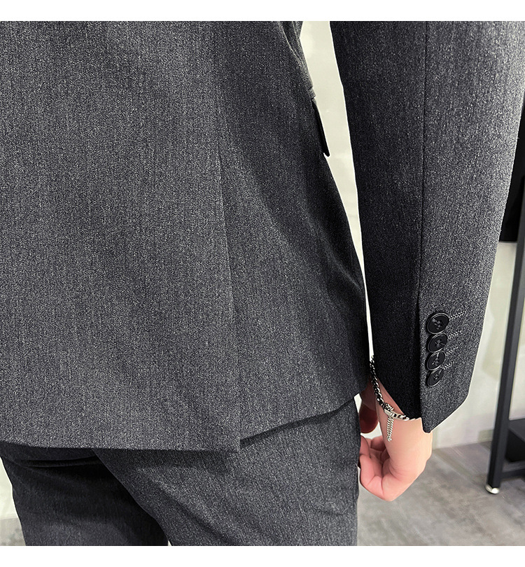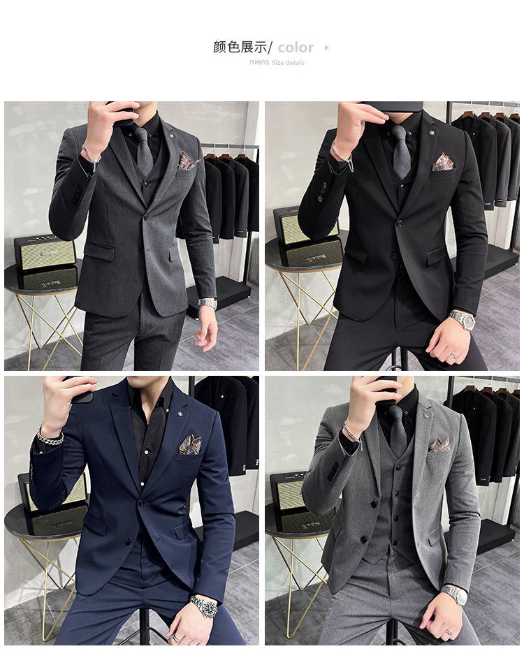남자의 세트 세트 유행 질감 단일 행 버클 더블 스플릿 세트 세트 슬림 핏 세트 쓰리 피스 세트