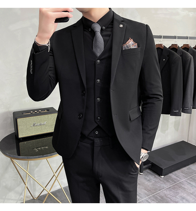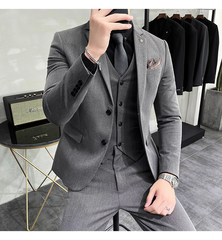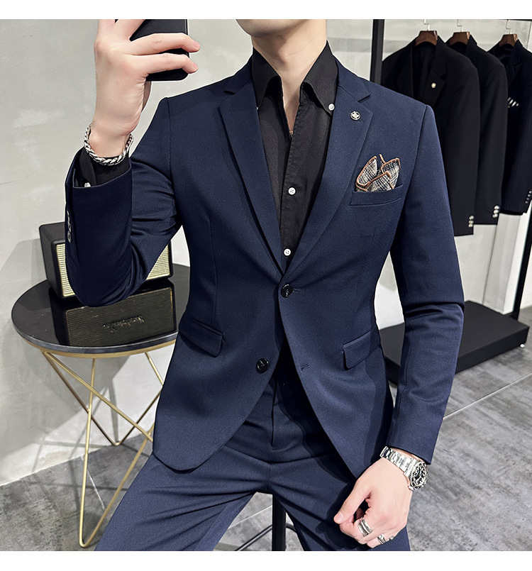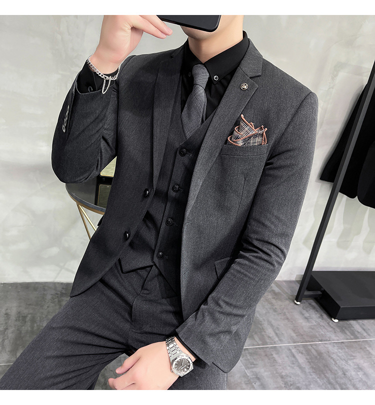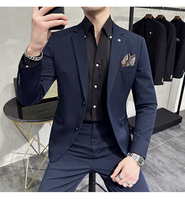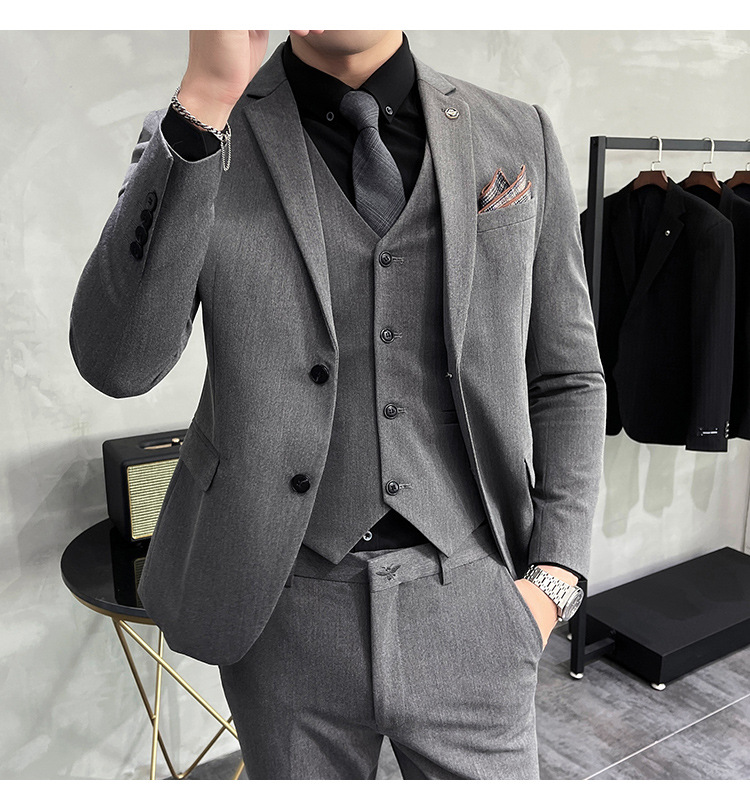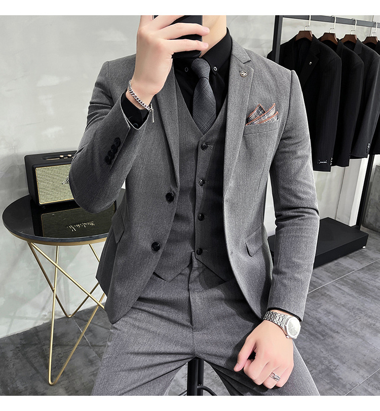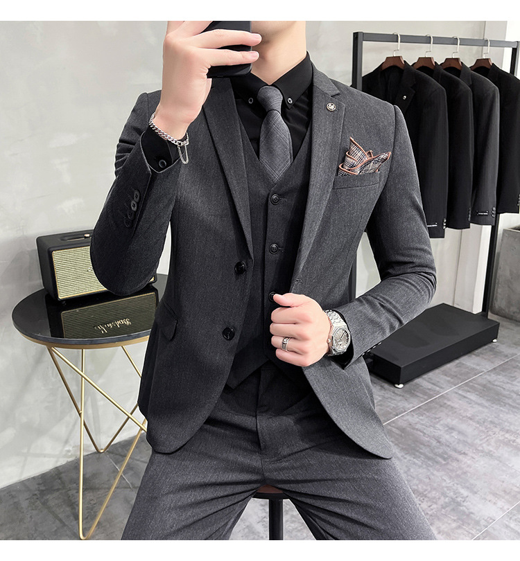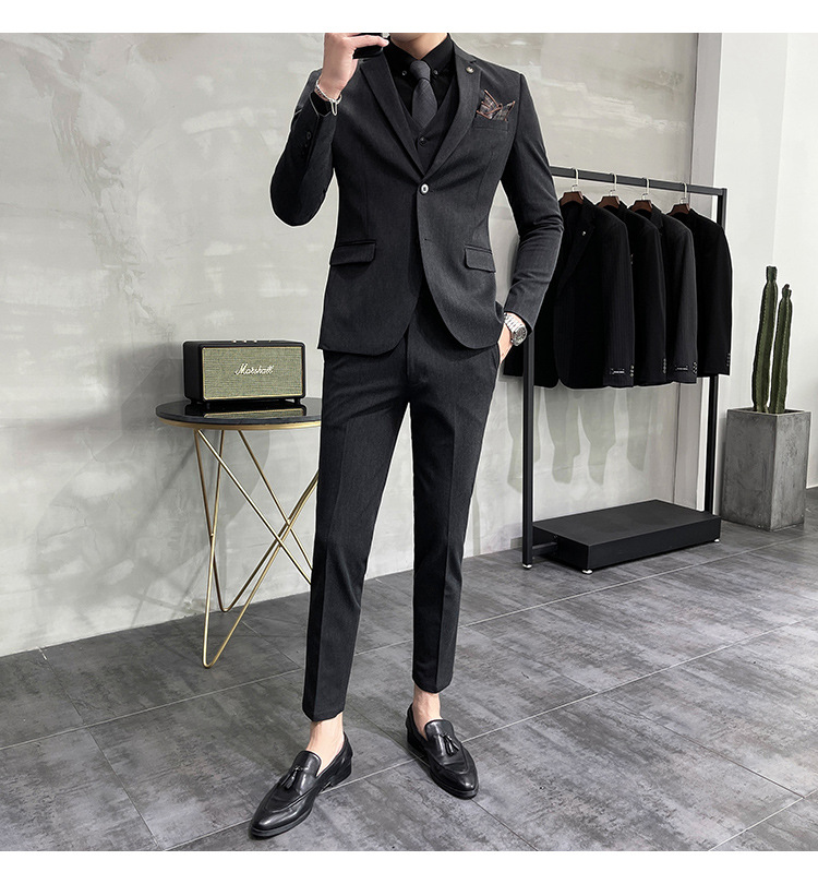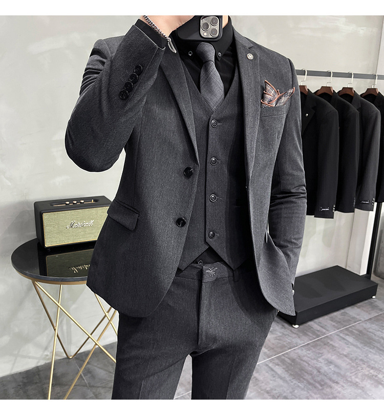 남자의 세트 세트 유행 질감 단일 행 버클 더블 스플릿 세트 세트 슬림 핏 세트 쓰리 피스 세트