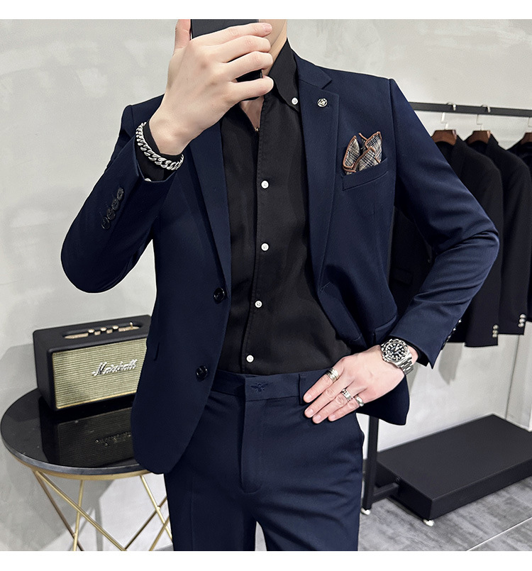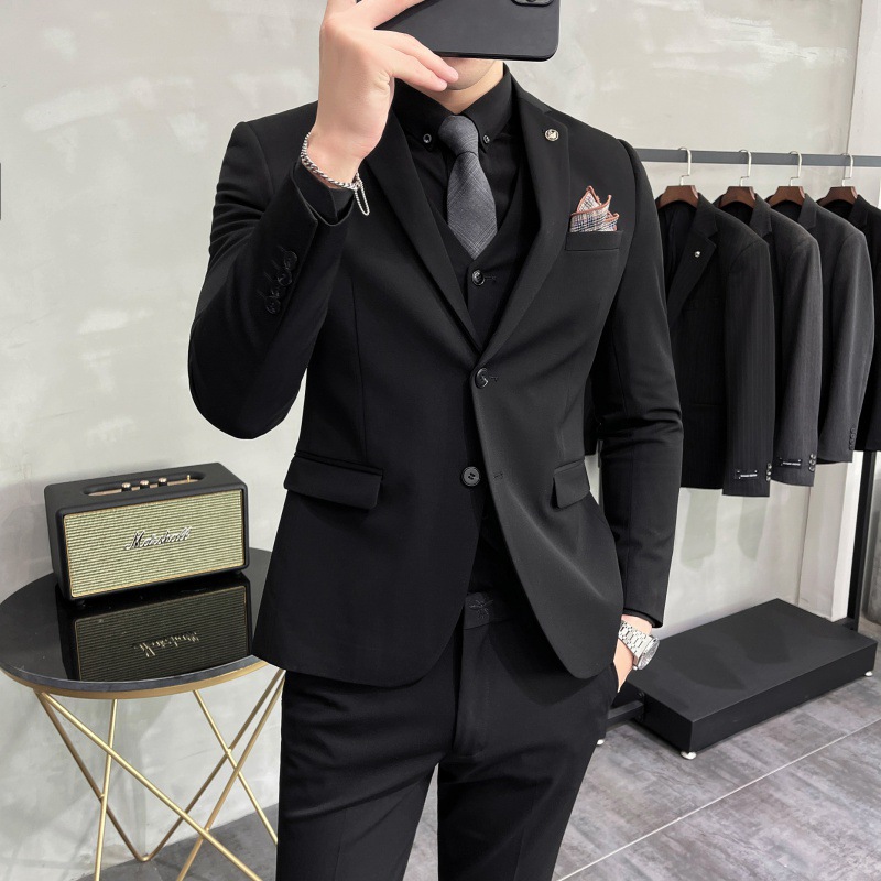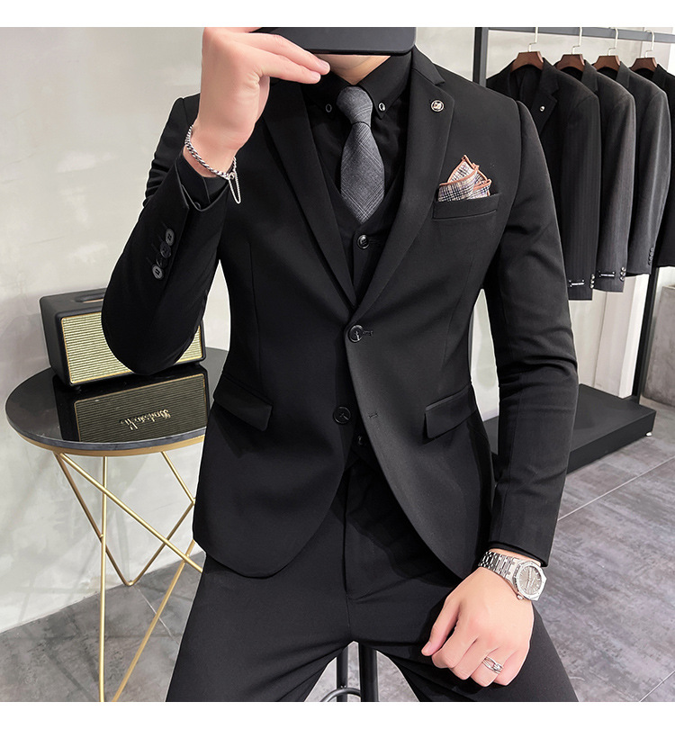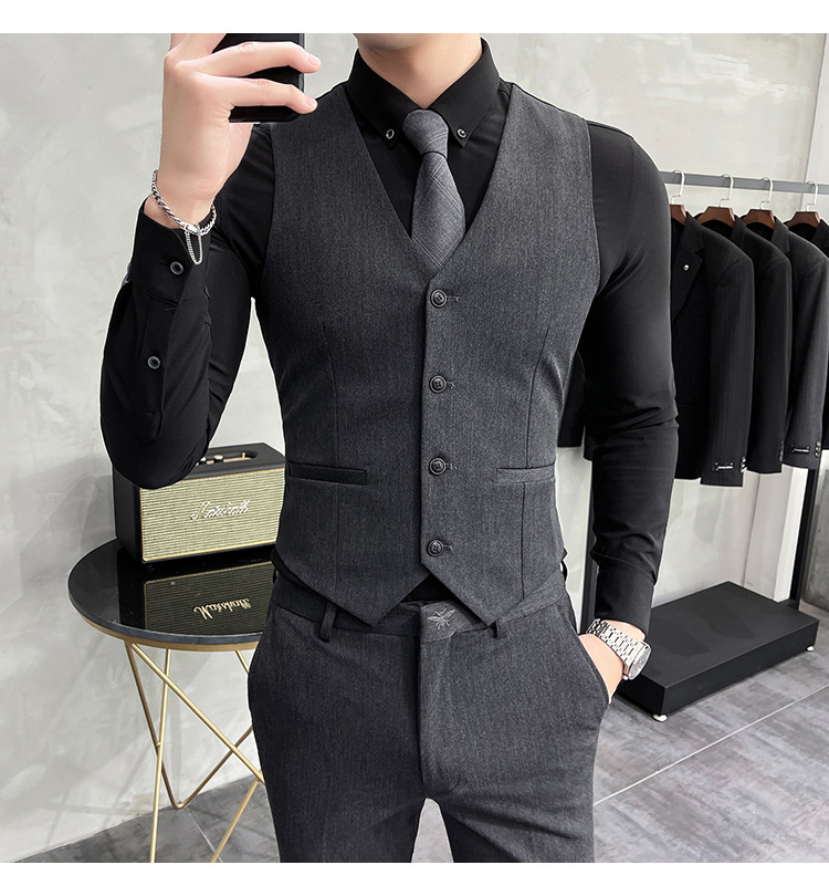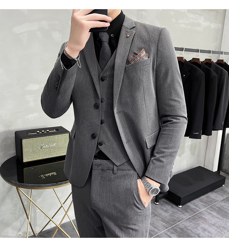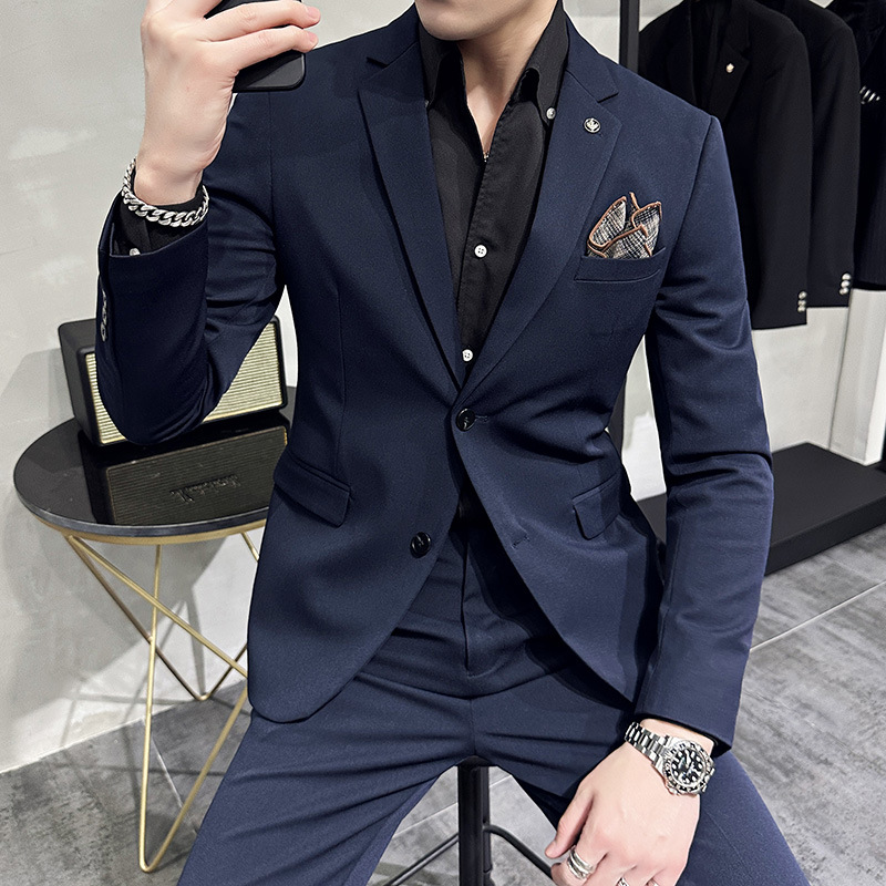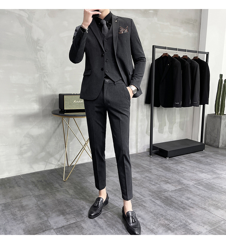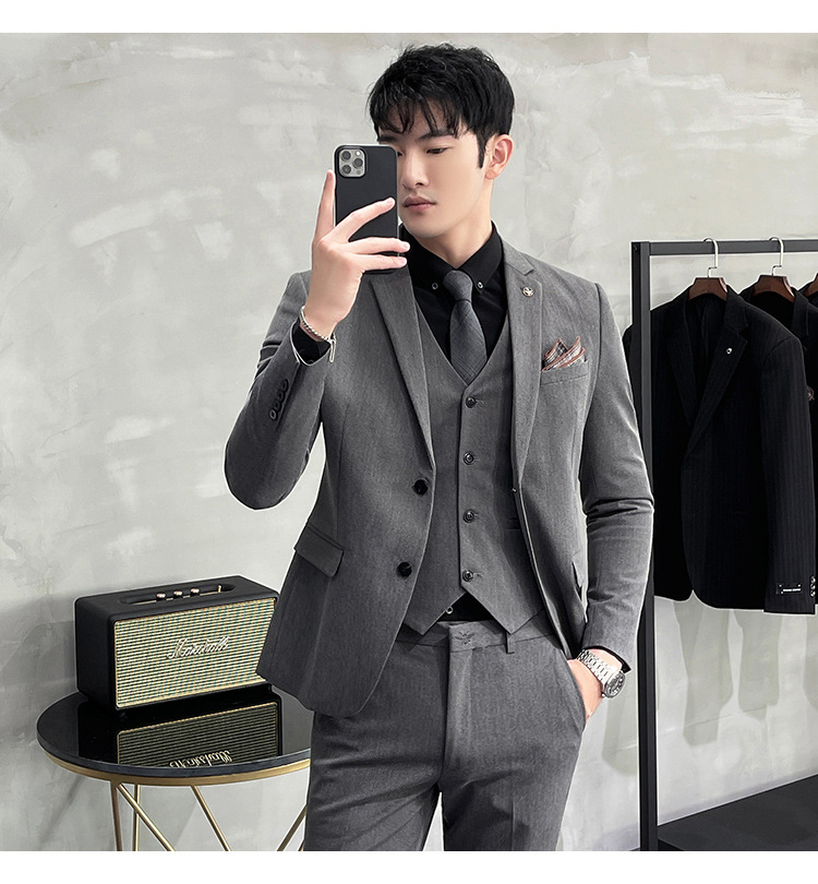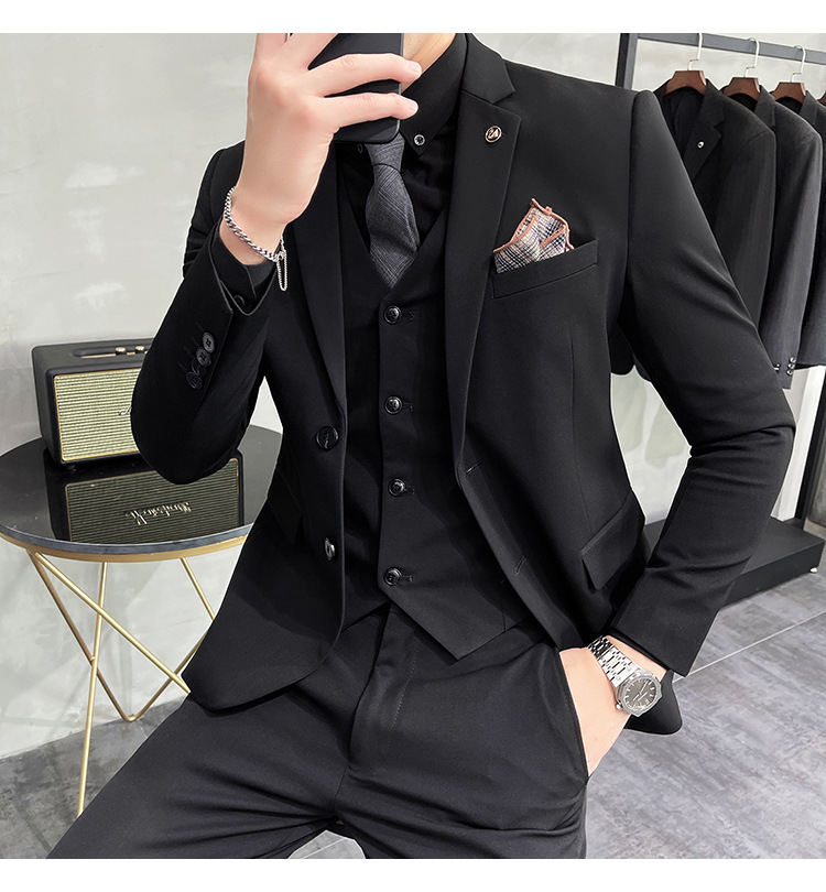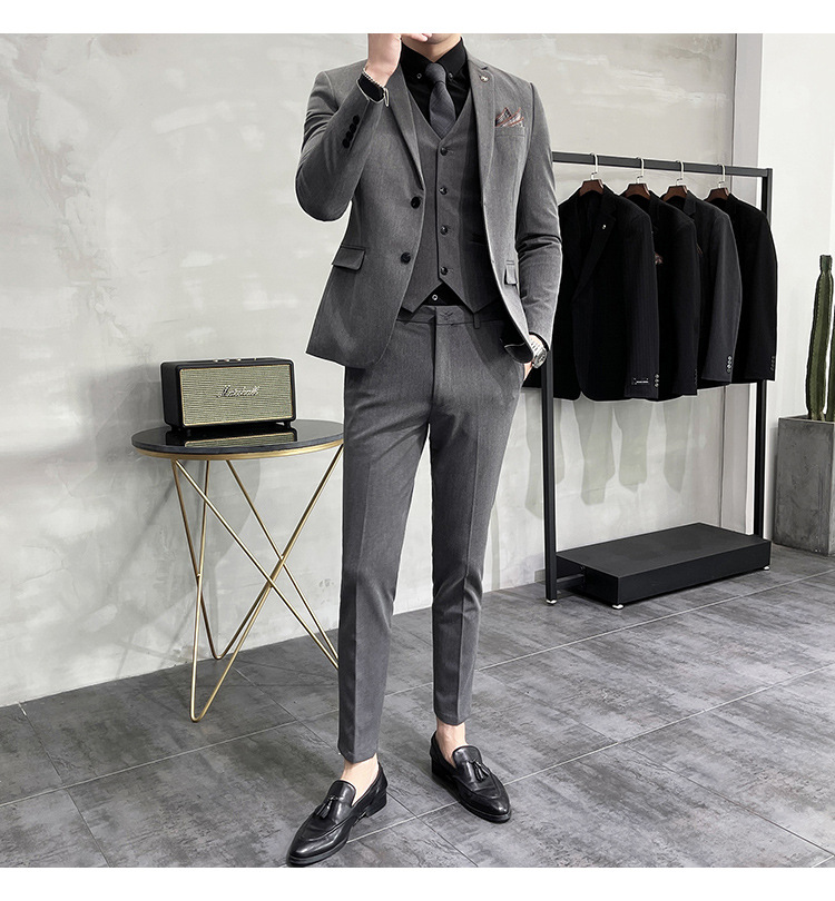 남자의 세트 세트 유행 질감 단일 행 버클 더블 스플릿 세트 세트 슬림 핏 세트 쓰리 피스 세트
