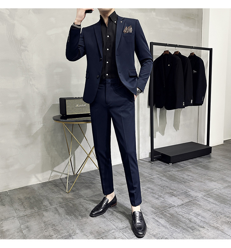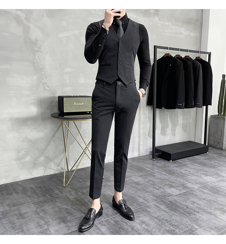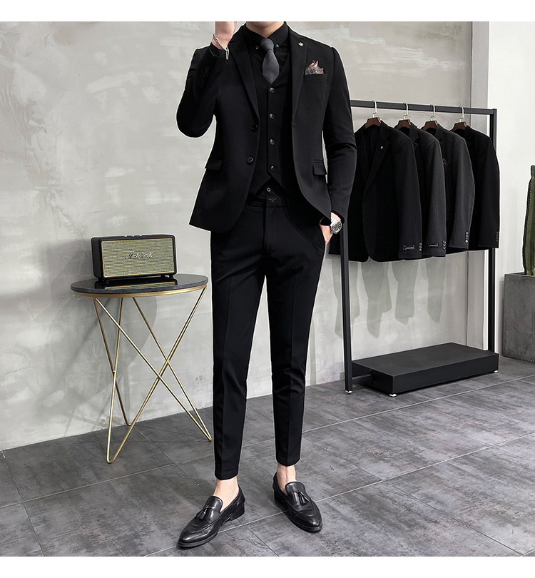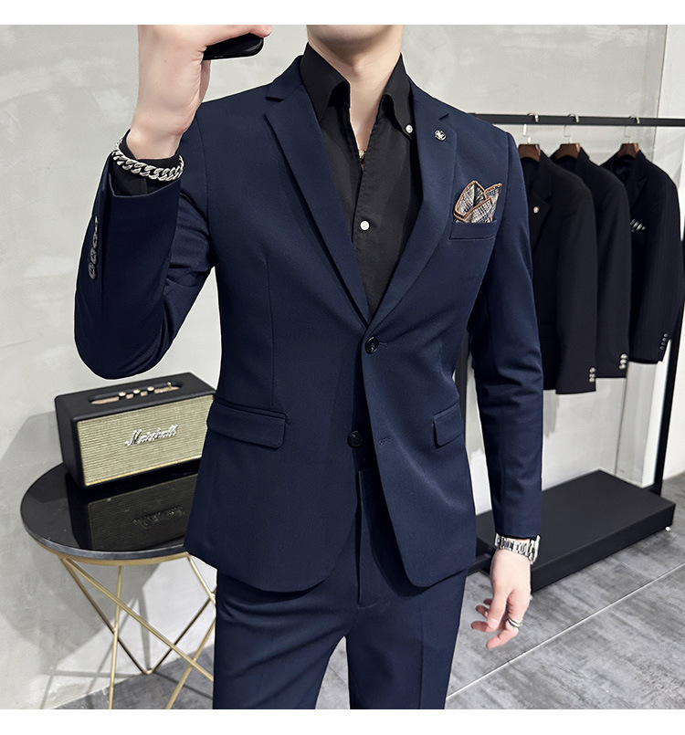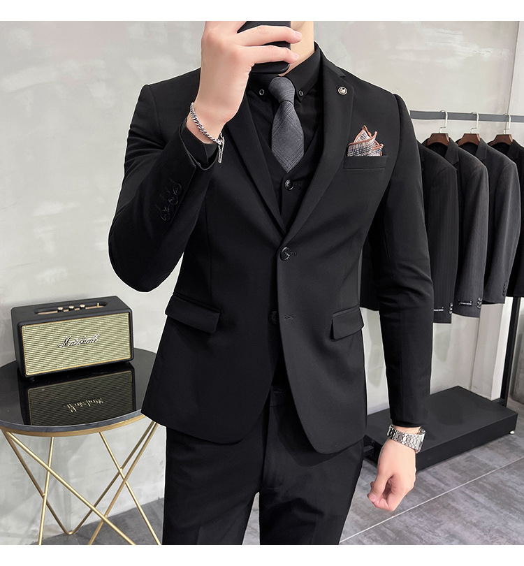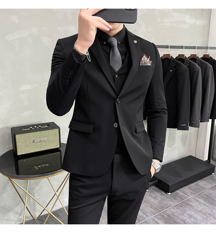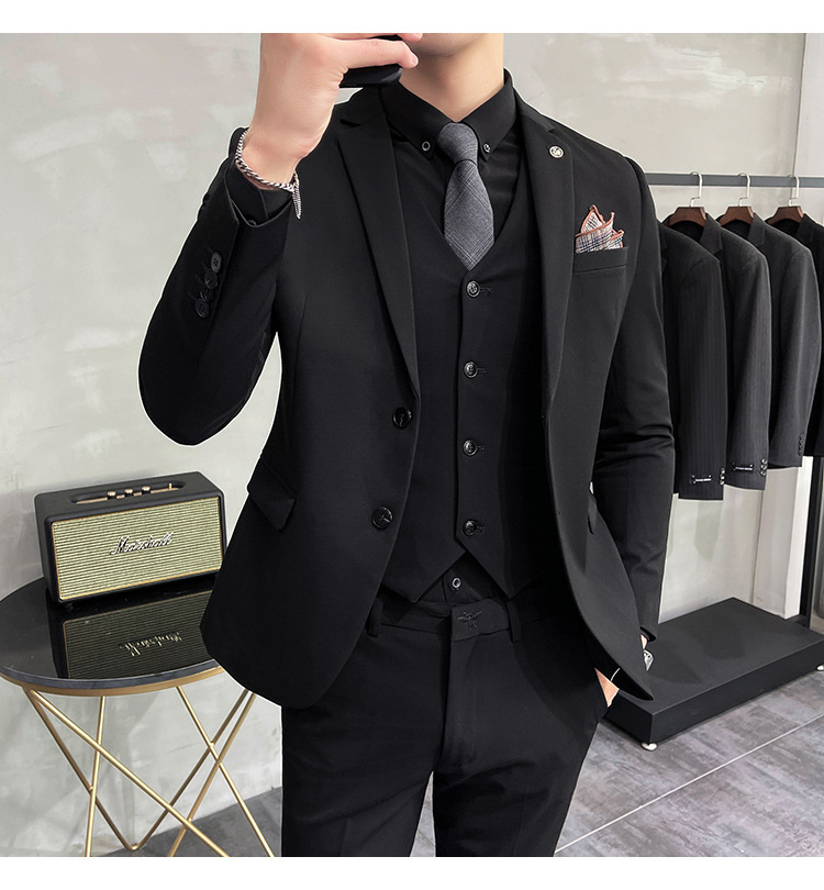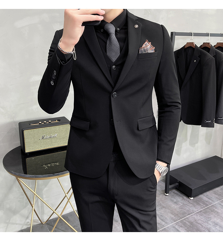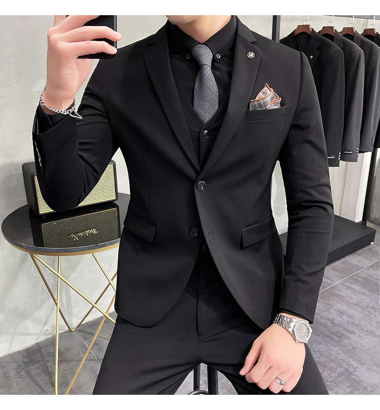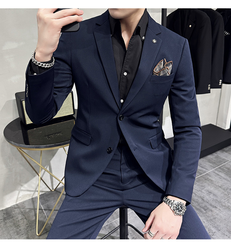 남자의 세트 세트 유행 질감 단일 행 버클 더블 스플릿 세트 세트 슬림 핏 세트 쓰리 피스 세트