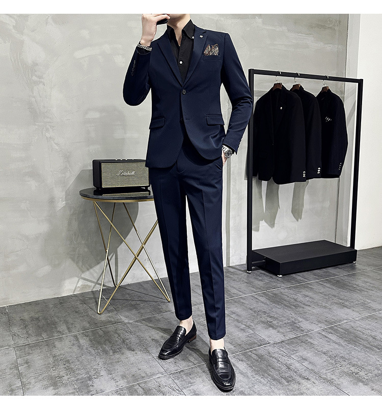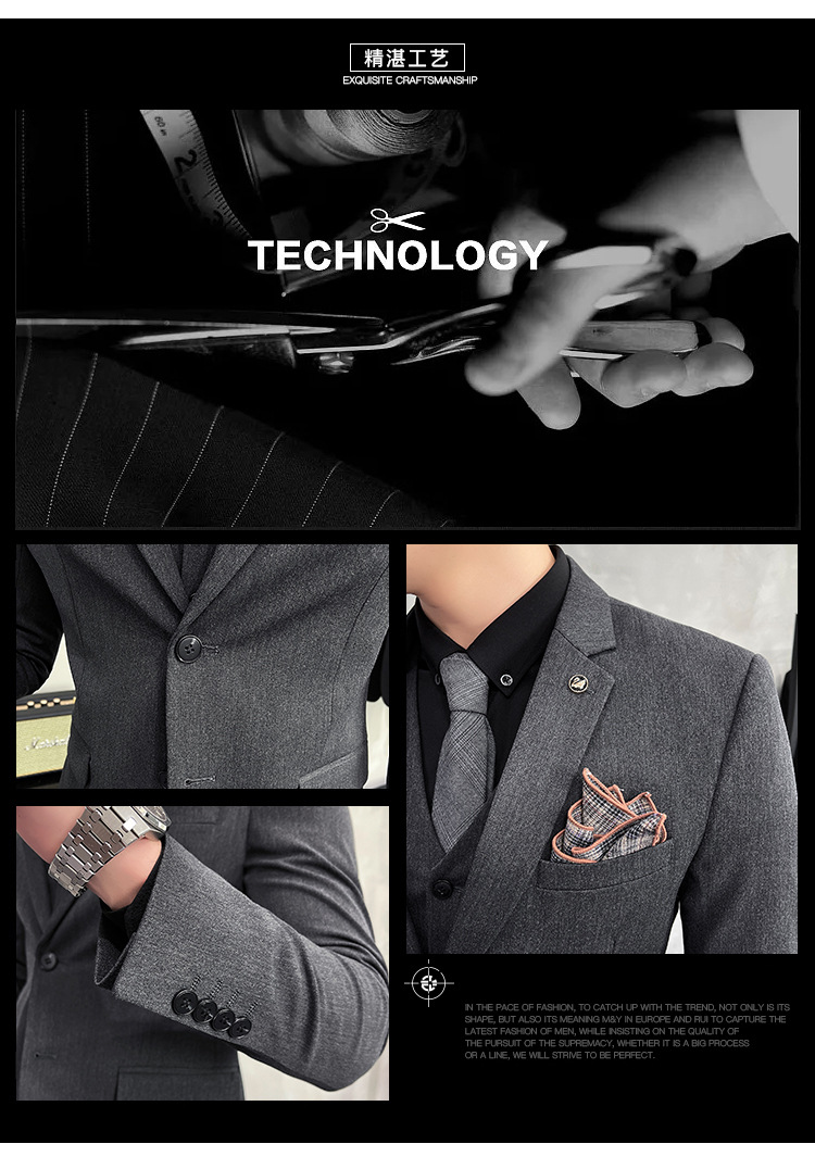 남자의 세트 세트 유행 질감 단일 행 버클 더블 스플릿 세트 세트 슬림 핏 세트 쓰리 피스 세트스토어 가기