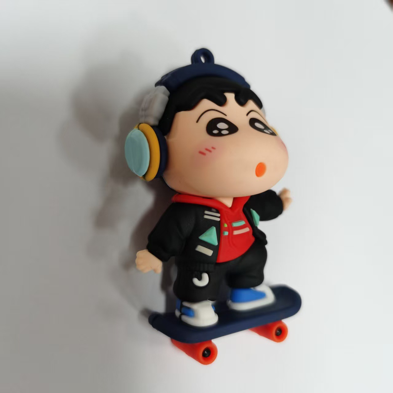 타오샤오멍 귀여운 크레용신짱 스케이트보드 입체 피규어 자동차 키홀더 장식 야시장 판매 인형