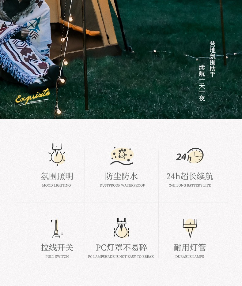 고속 야외 캠핑 조명 야외 캠프 장식 조명 충전 교수형 LED 텐트 조명 캐노피 분위기 조명