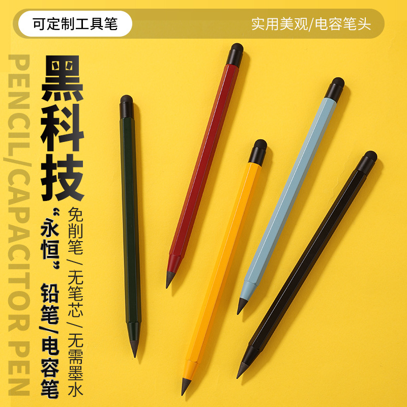 육각형 금속봉 이터널 펜슬 블랙 기술 커패시터 헤드 터치 스크린-학생용 무잉크 필기 연필스토어 가기