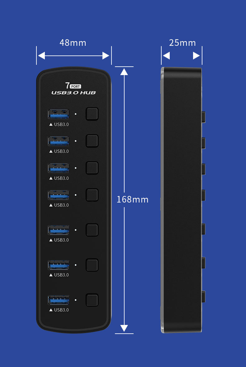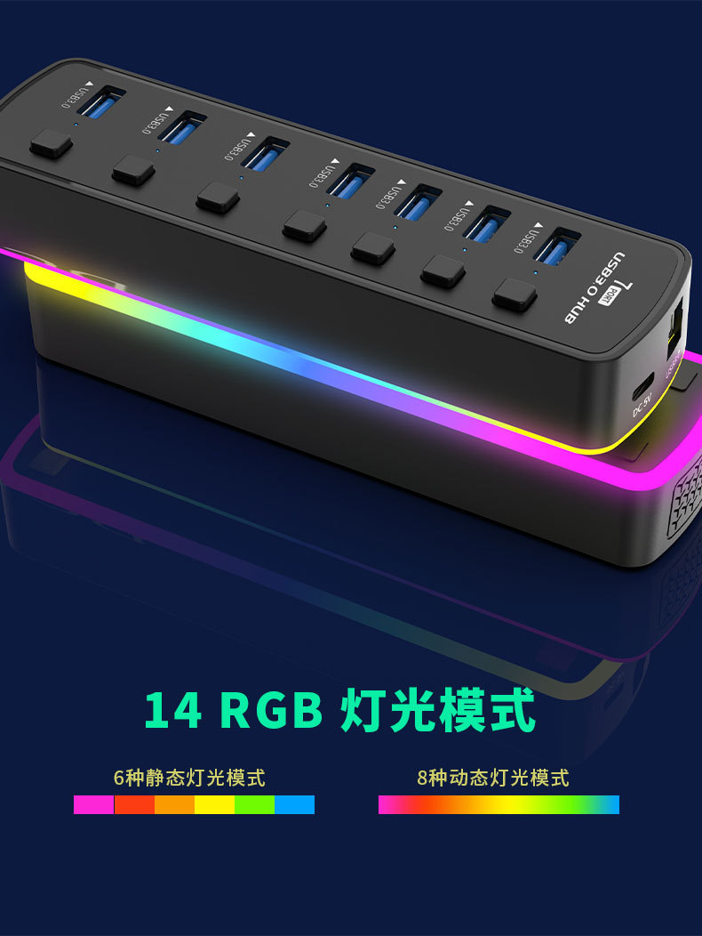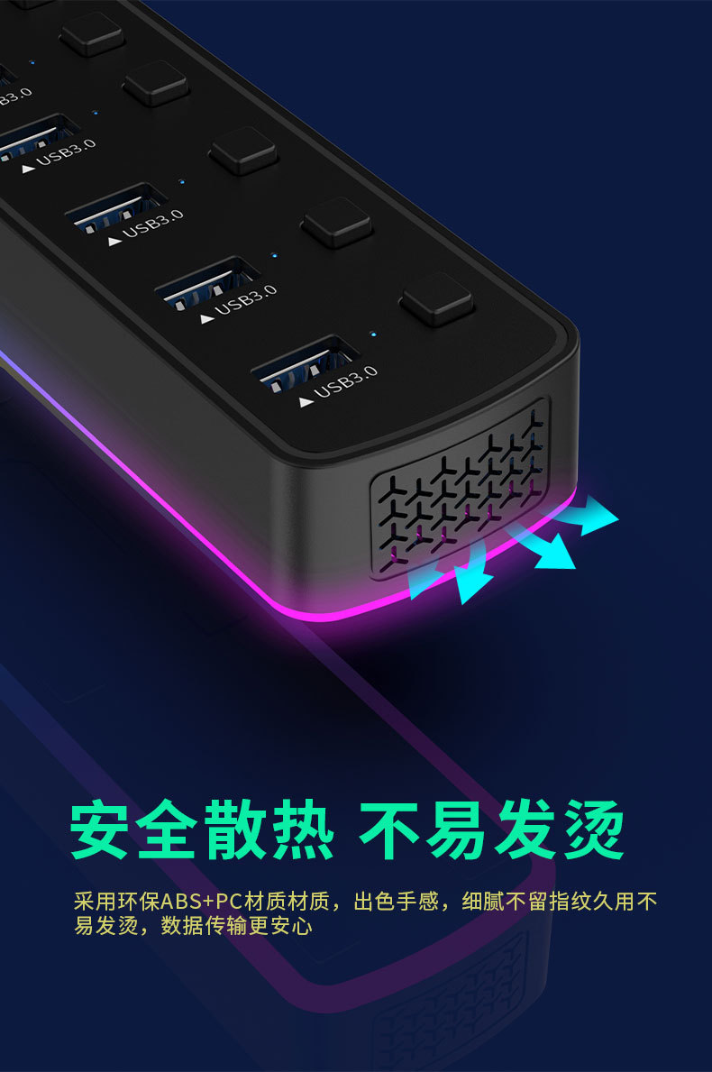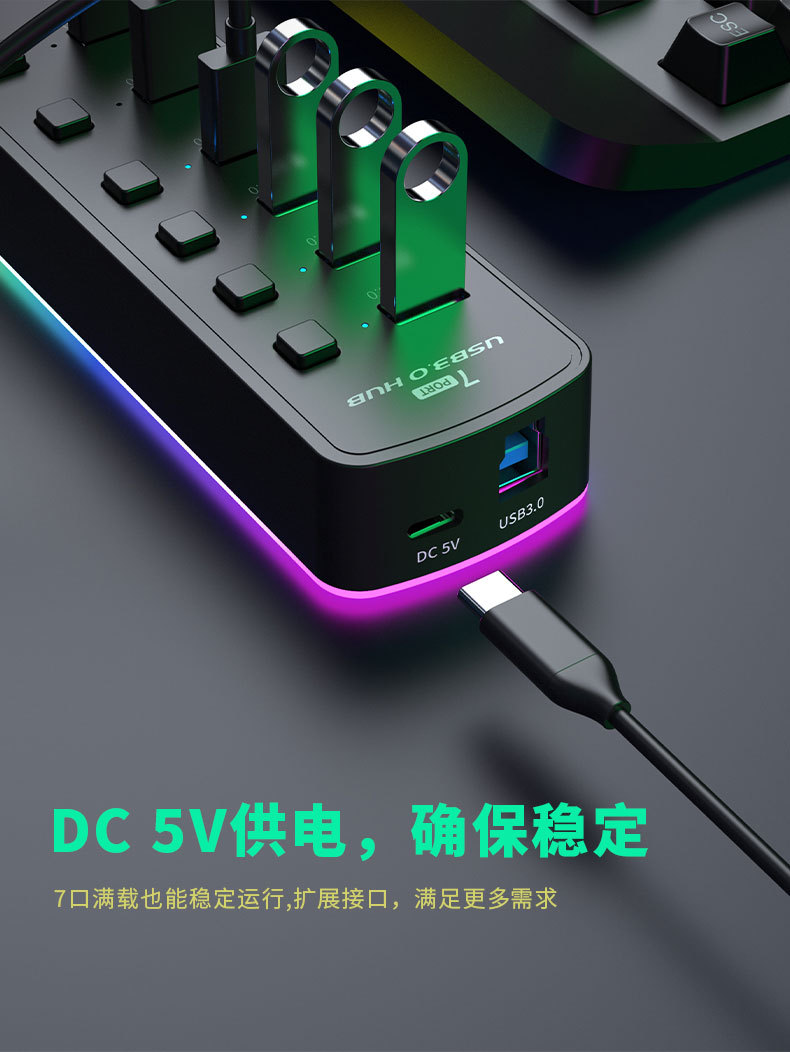 다채로운 usb3.0 허브 7-전원 공급 장치 포트 개인 모델이있는 포트 허브 스플리터 컴퓨터 변환기 독립 스위치스토어 가기