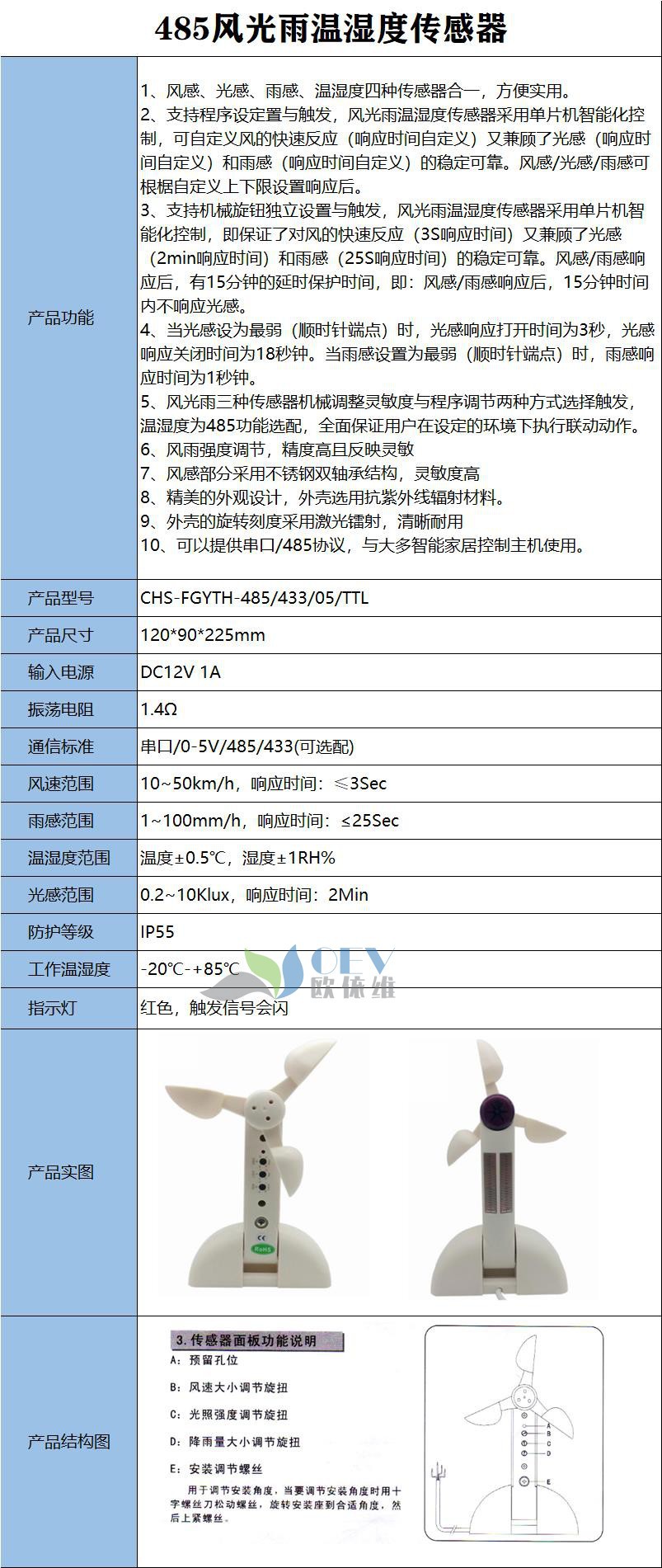 功能特点:风量,雨量,光照,温湿度独立传感信号上传