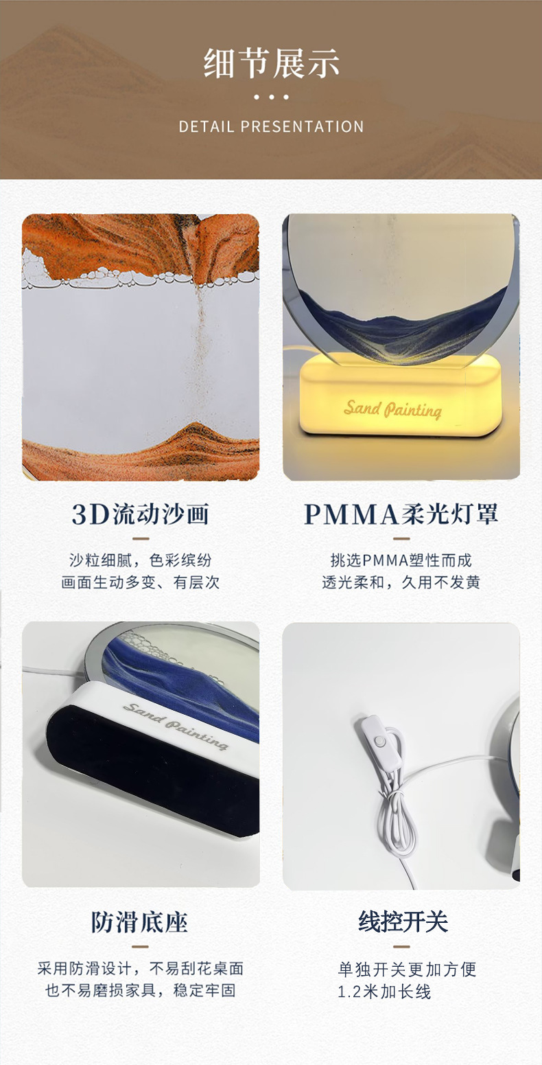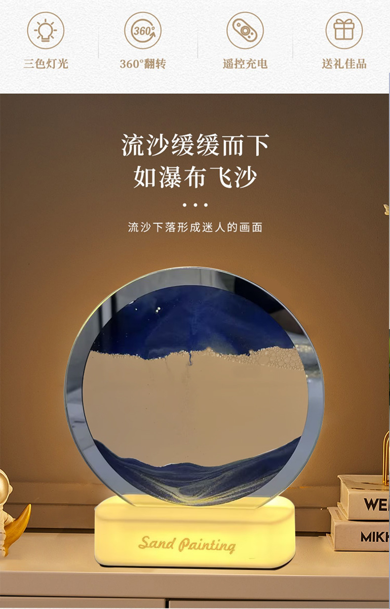 국경을 넘는 인기 상품, 모래시계 램프, 3D 모래 그림 테이블 램프, 침실 침대 옆 램프, 탁상 그림 장식품, 분위기 조명, 모던하고 심플한 디자인