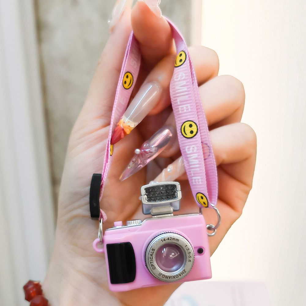 • 643 핑크 사운드 야광 카메라 웃는 얼굴 로프 로프 길이 24CM 또는 34CM 사진을 찍고 메시지를 남겨주세요