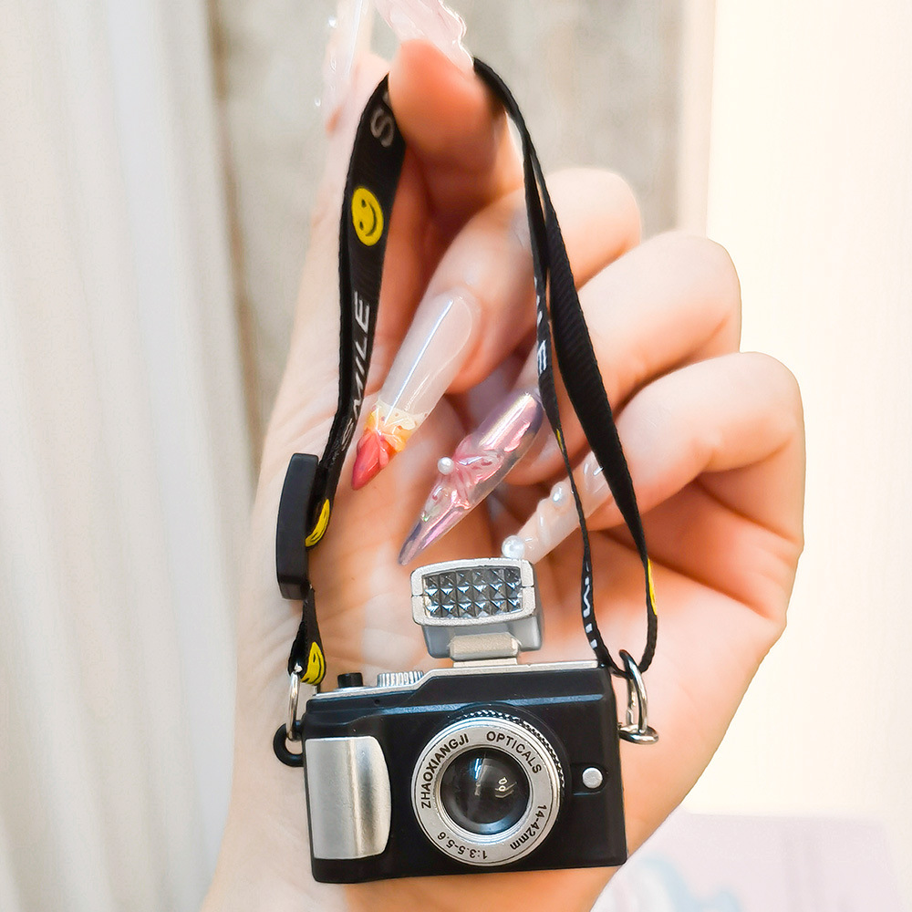 1688 코튼 인형 웃는 얼굴 졸라 매는 끈 직물 웨빙 빛나는 소리 미니 SLR 카메라 펜던트 봉제 인형스토어 가기