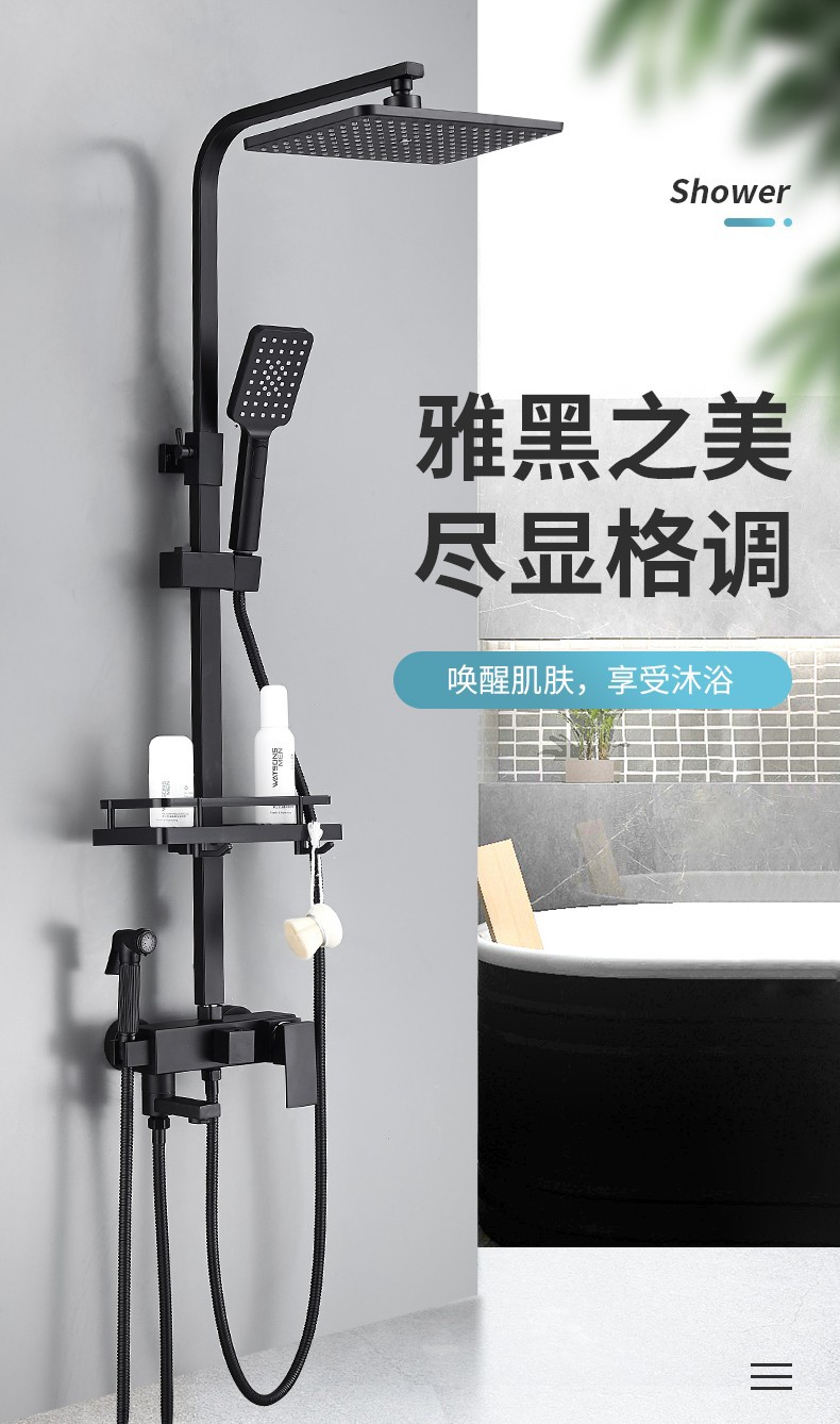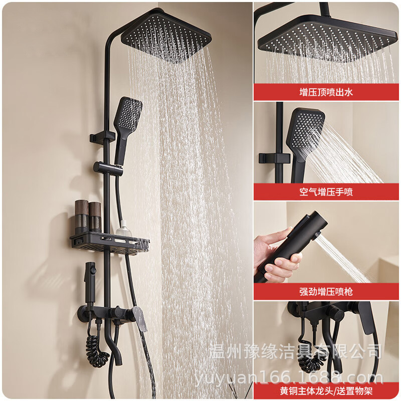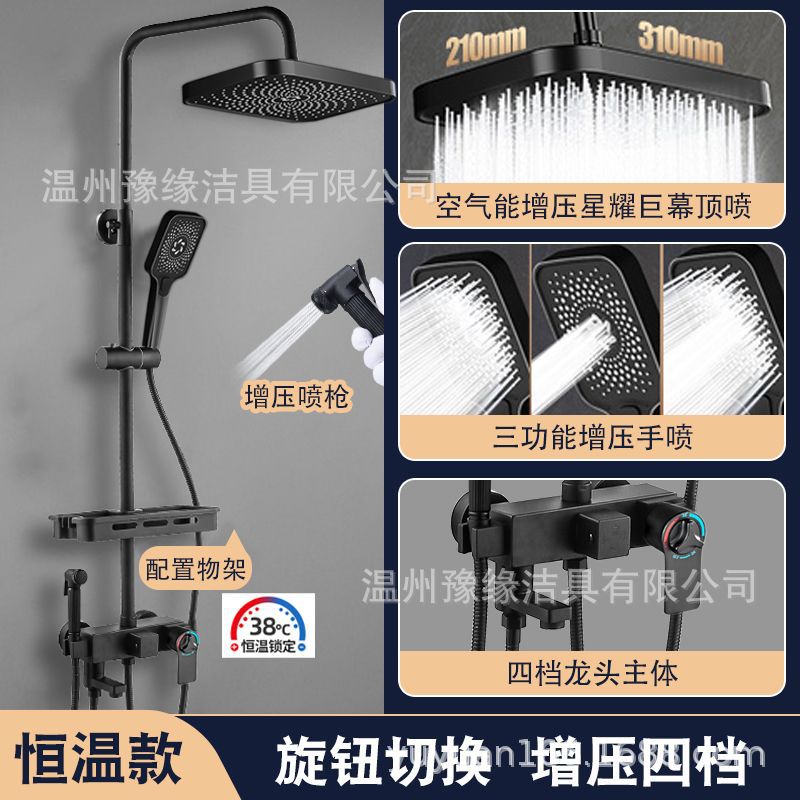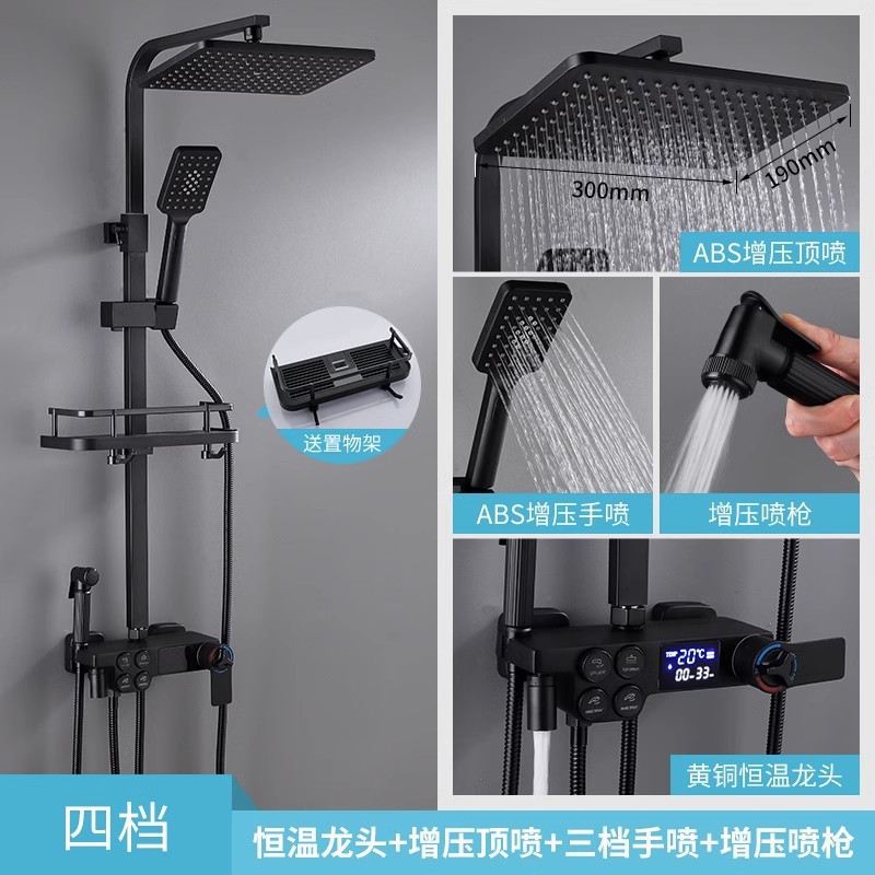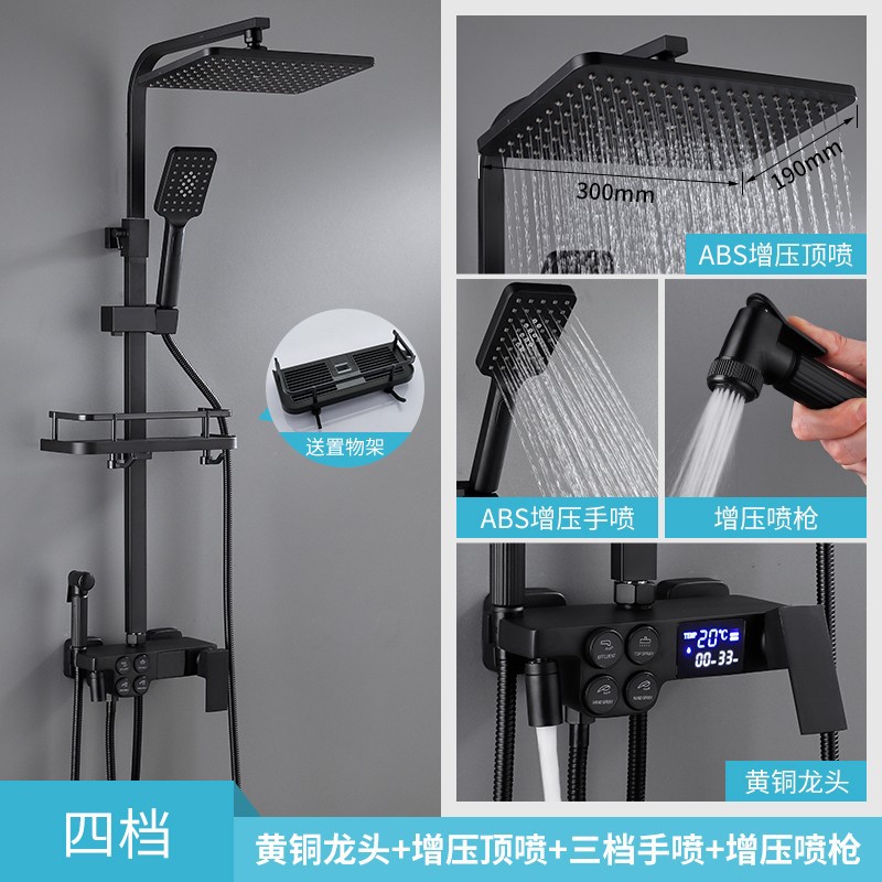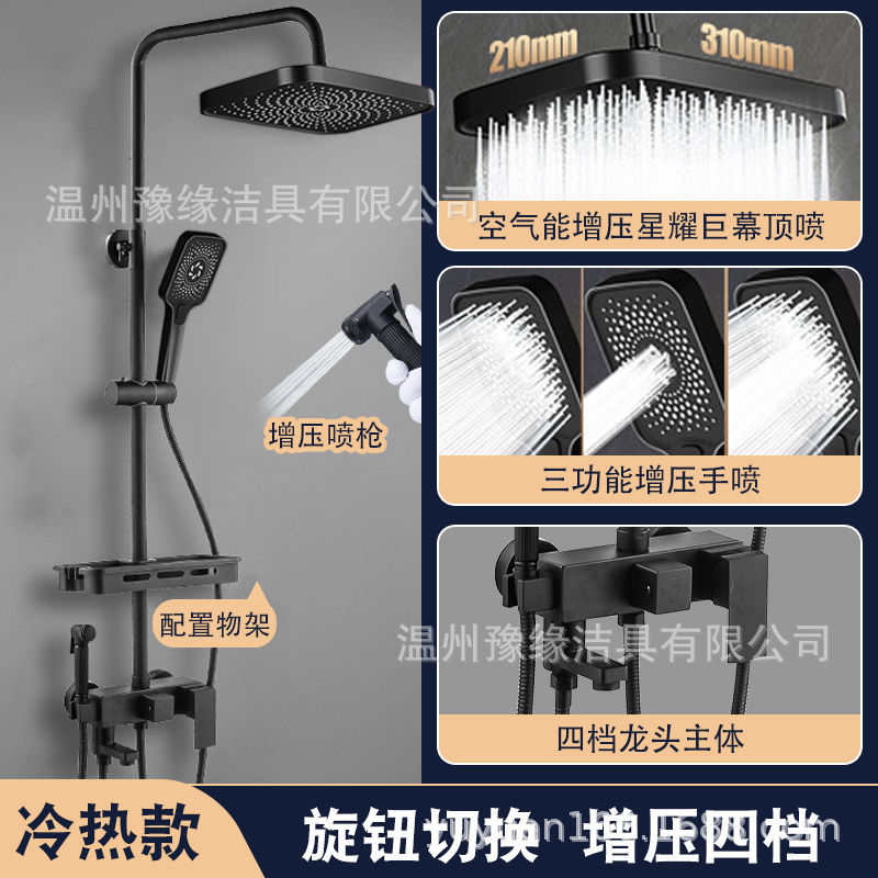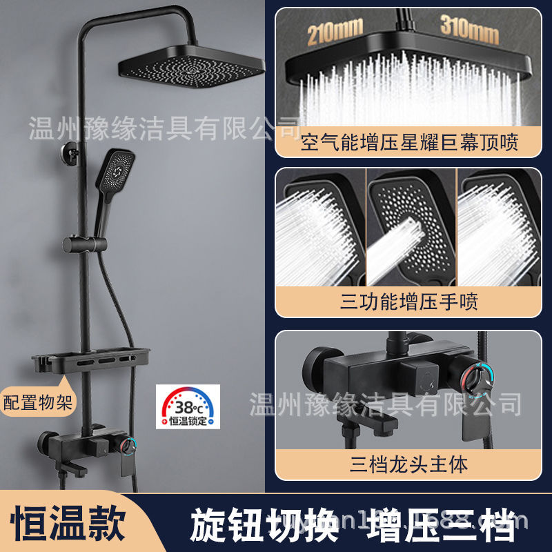 국경 간 샤워 키트 일정한 온도 검정색 가정용 욕실 샤워기 욕실 레인 부스터 구리 바디 샤워기스토어 가기
