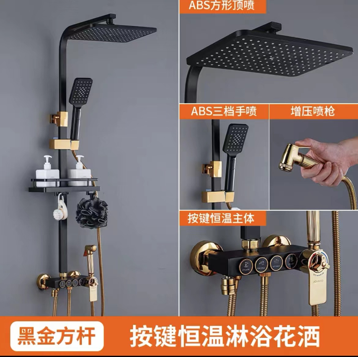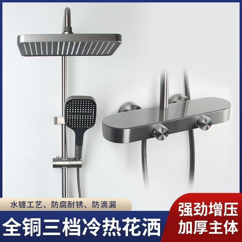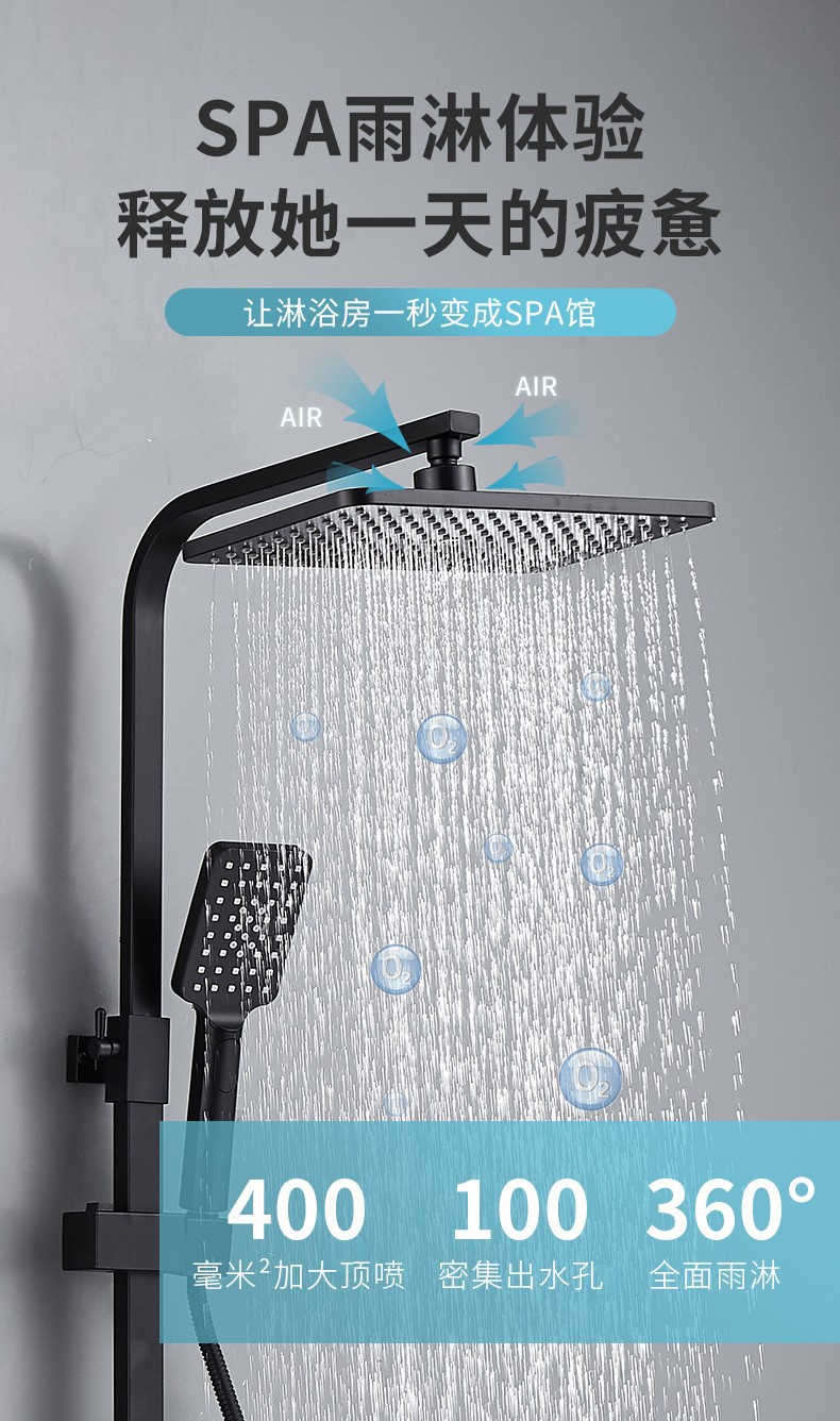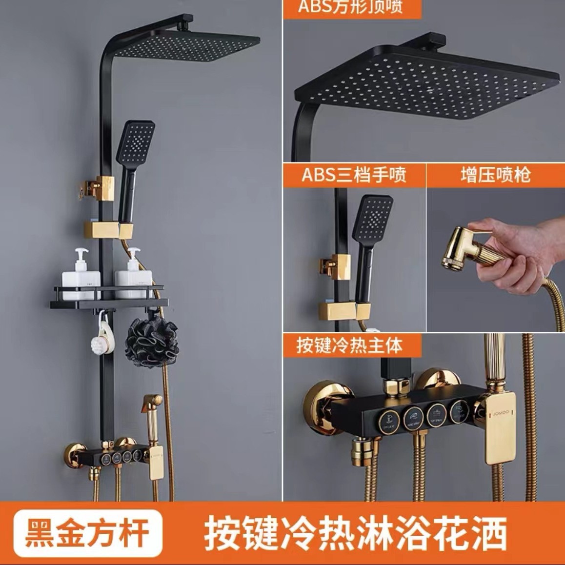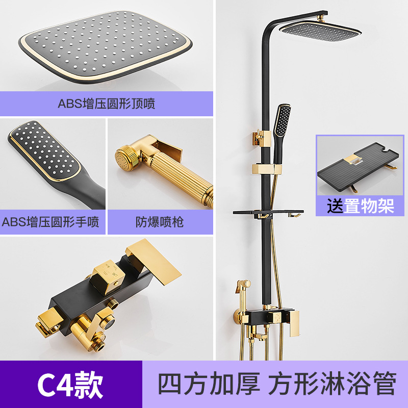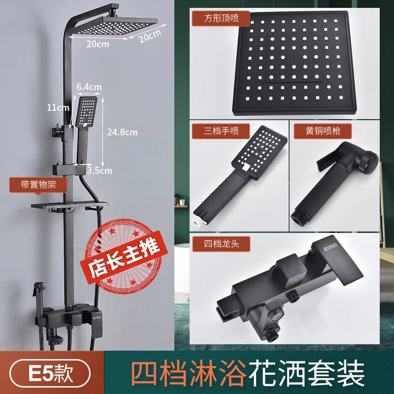 국경 간 샤워 키트 일정한 온도 검정색 가정용 욕실 샤워기 욕실 레인 부스터 구리 바디 샤워기스토어 가기