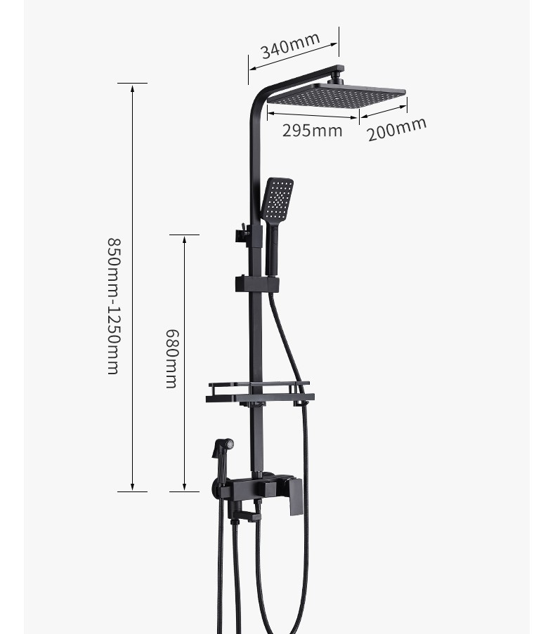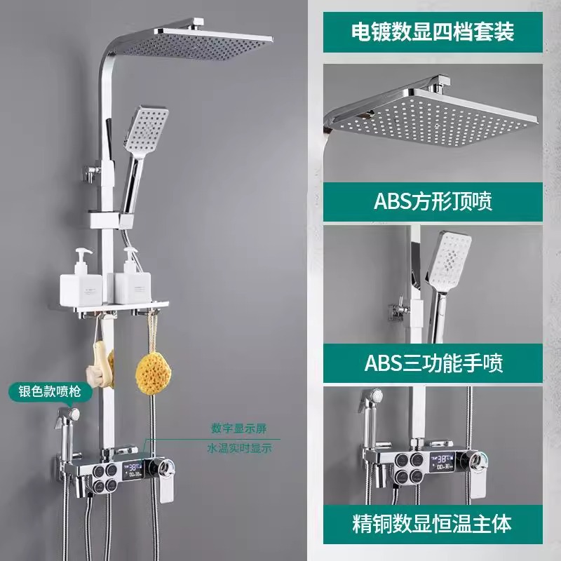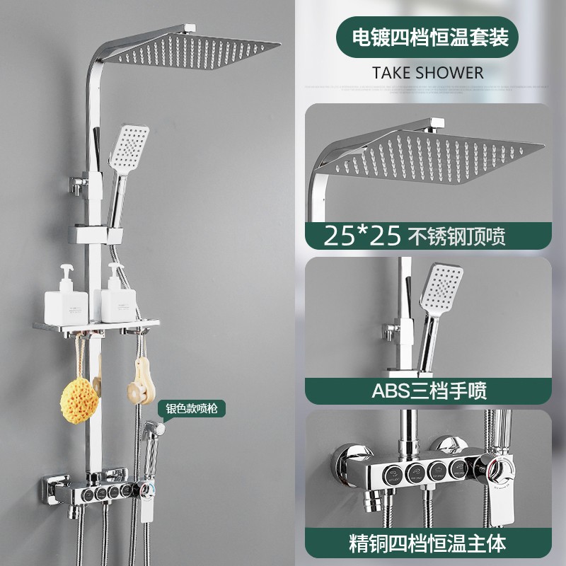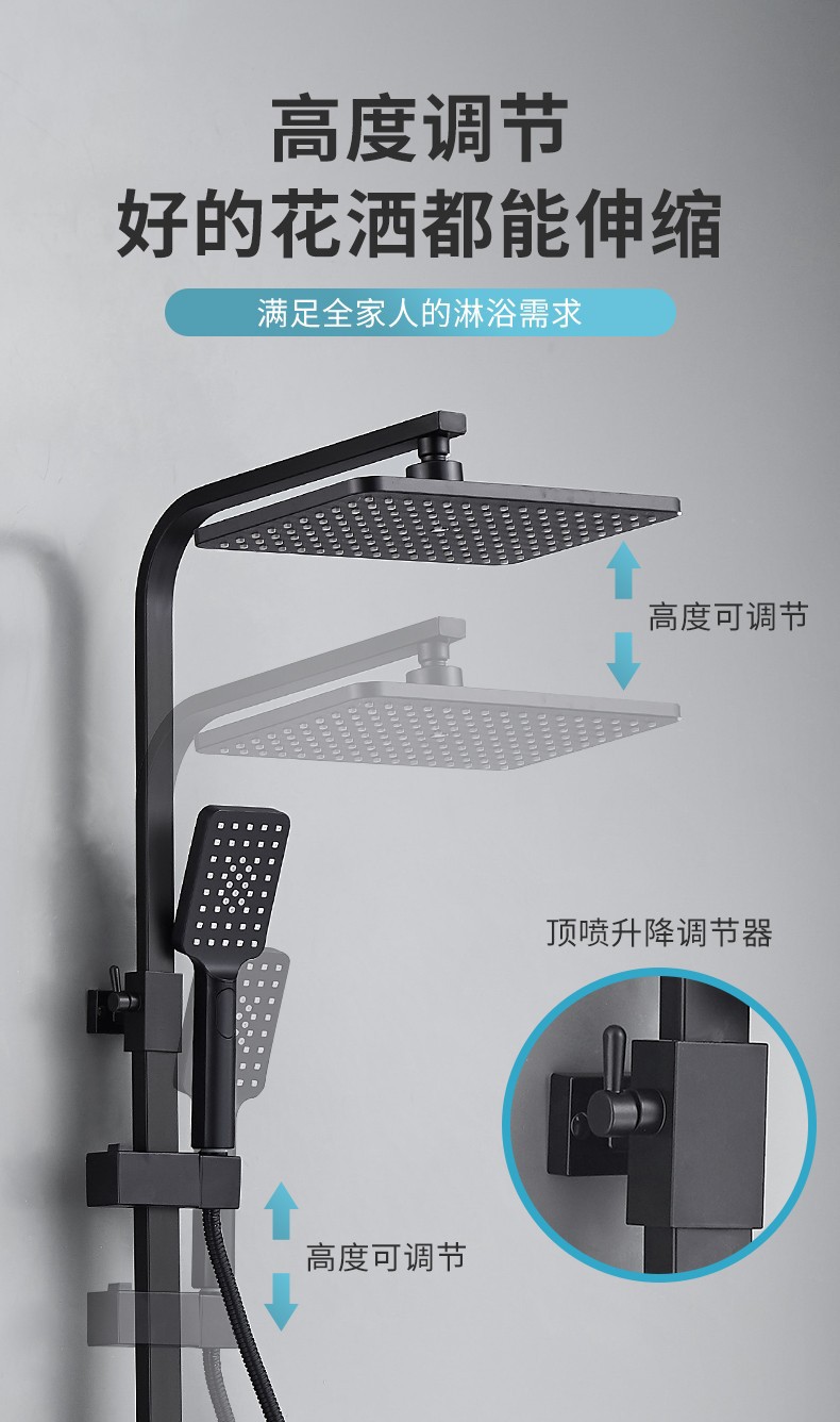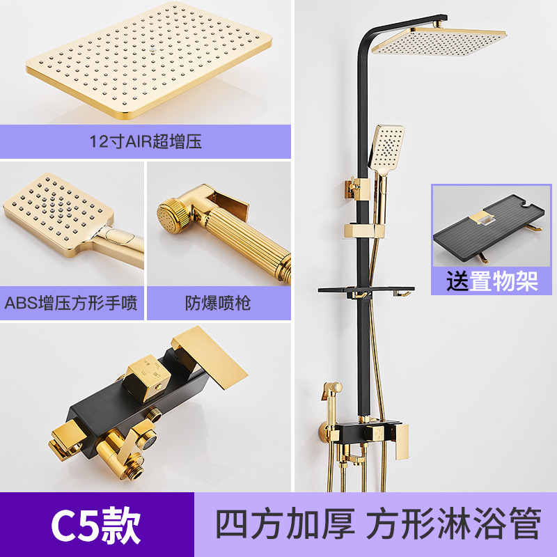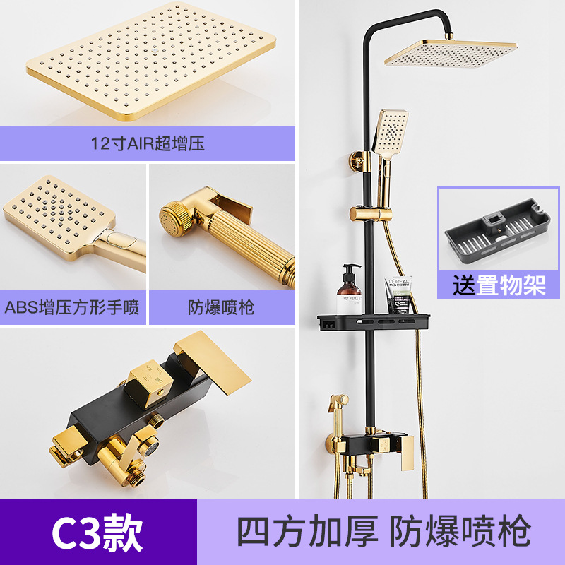 국경 간 샤워 키트 일정한 온도 검정색 가정용 욕실 샤워기 욕실 레인 부스터 구리 바디 샤워기스토어 가기