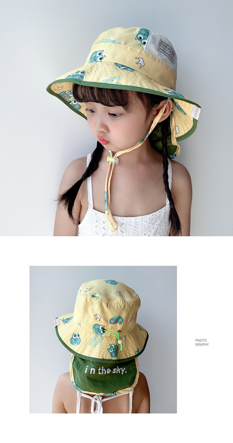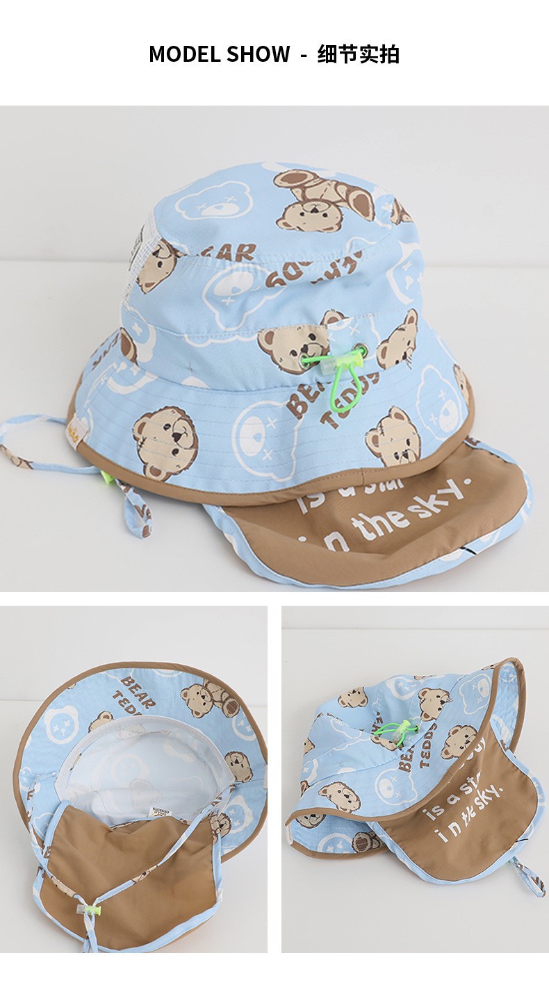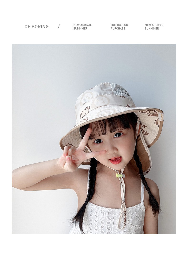 일본 어린이 목도리 차양 아기 봄과 여름 가벼운 통기성 어부 모자 소년 소녀 속건 대형 챙 선 스크린 모자
