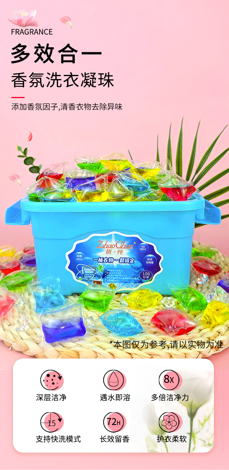 Chaochun 100개 박스형 5g 세탁 비즈 딥 클렌징 세탁 볼 오래 지속되는 향기 의류 가족